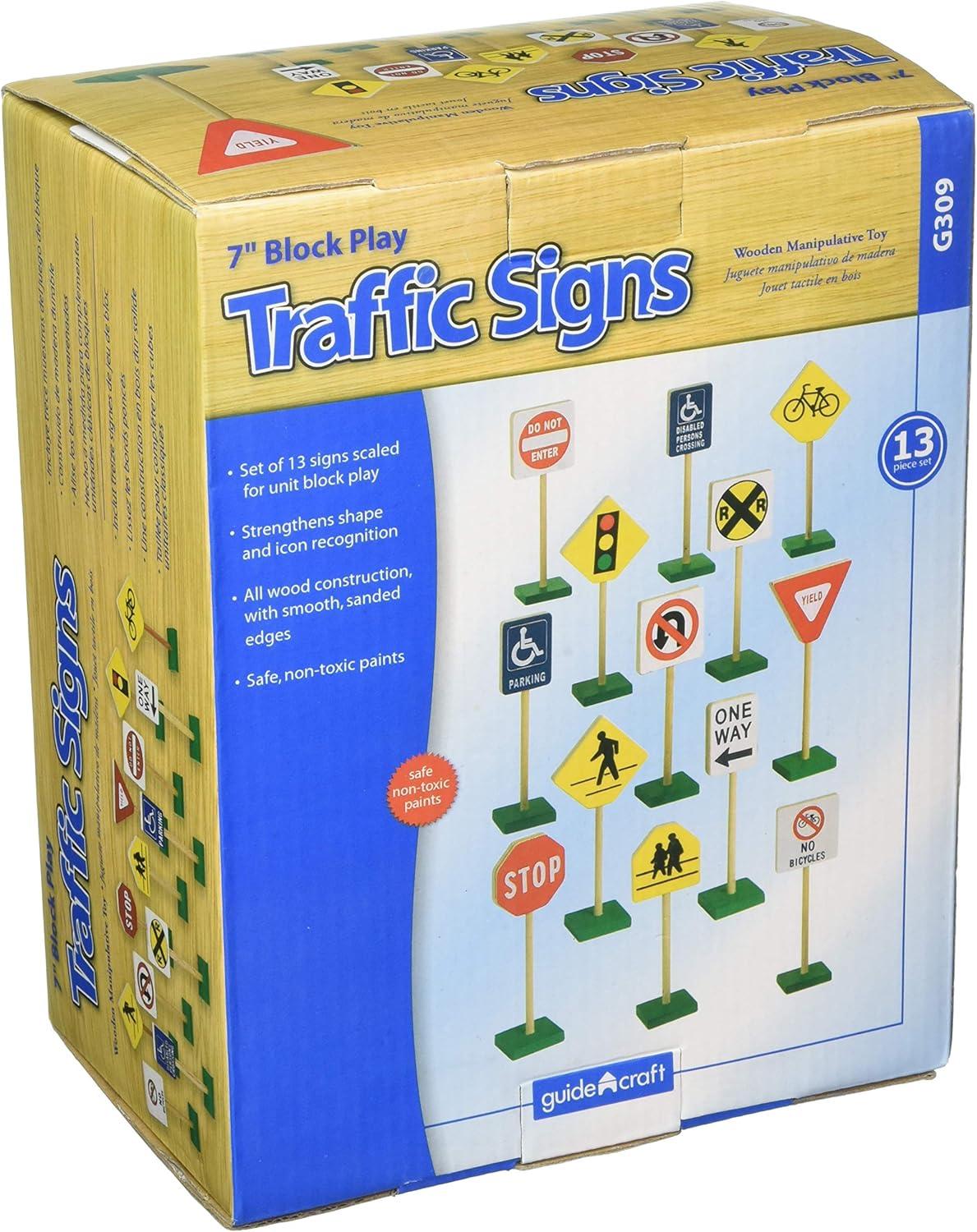 Guidecraft 7" Wooden Block Play Traffic Signs - Kids Educational and Learning Toys, Block Play Pretend Play Accessory Set for Toddlers and Preschool