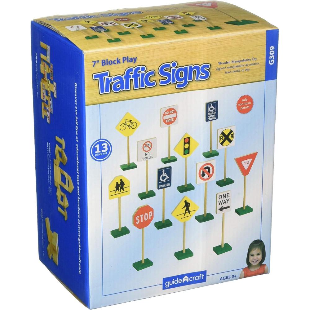 Guidecraft 7″ Wooden Block Play Traffic Signs – Kids Educational and Learning Toys, Block Play Pretend Play Accessory Set for Toddlers and Preschool