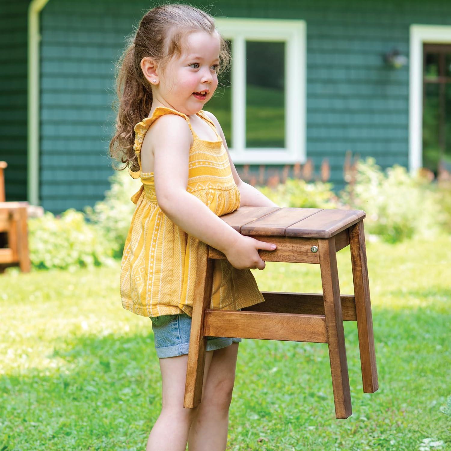 BUILT FOR OUTDOOR DURABILITY: Crafted from naturally weather-resistant acacia wood, the stools are made to withstand year-round use through sun, rain, and all the messiness of hands-on outdoor play.