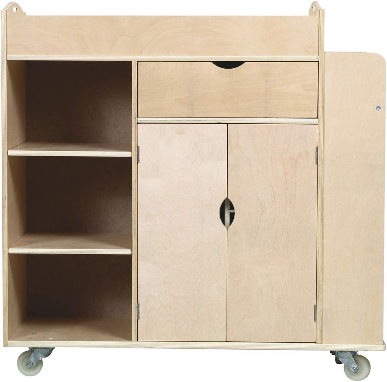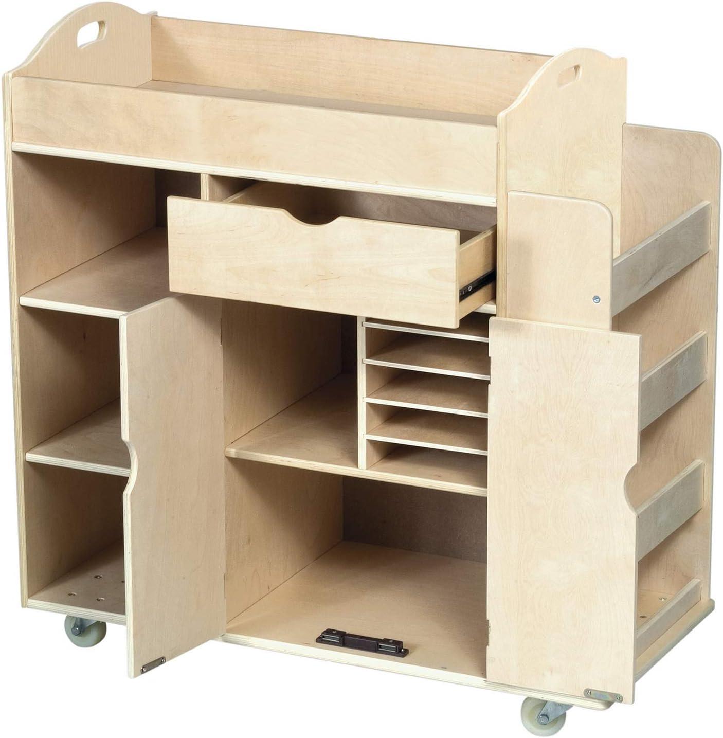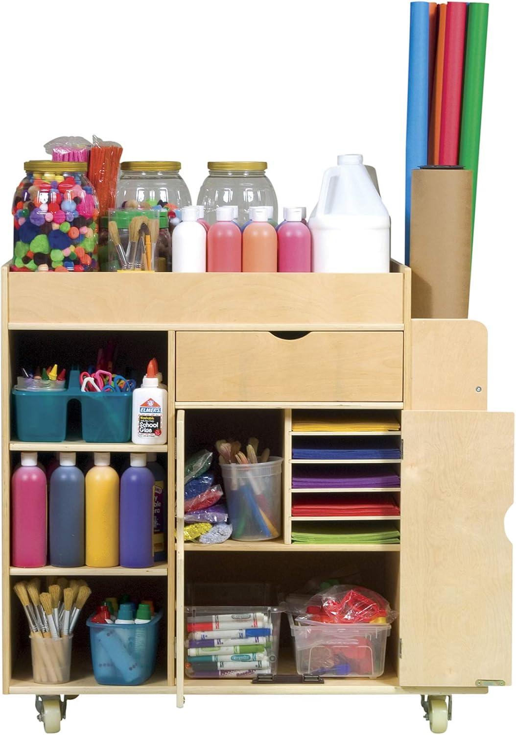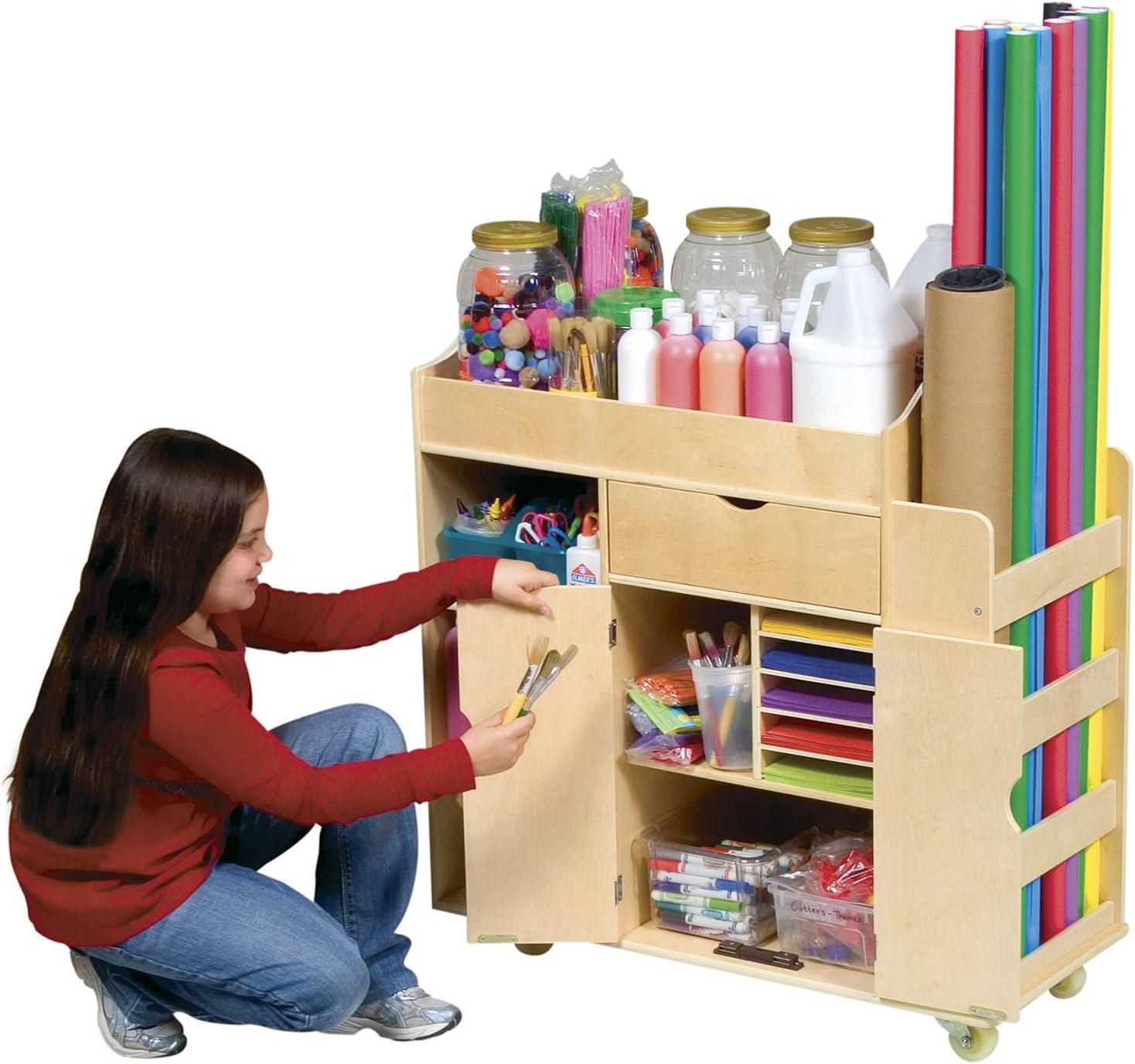Guidecraft Art Activity Cart - Rolling Wooden Storage Cabinet and Shelves with Caster Wheels; Arts and Crafts Supply; Classroom Furniture