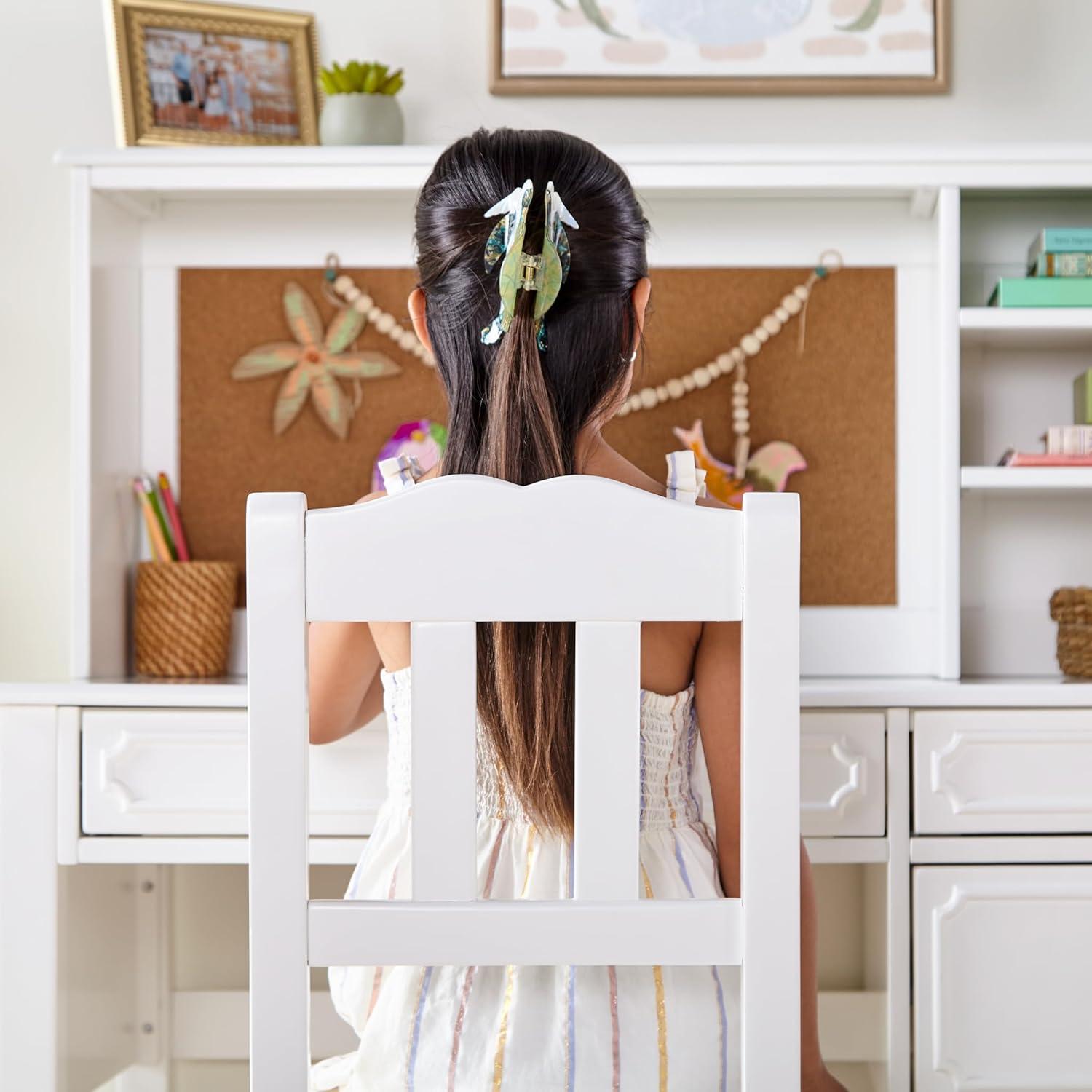 Guidecraft Avery Kids' Desk, Hutch and Chair Set - White: Children's Wooden Computer Desk with Storage Shelves and Drawers, Study Table and Chair for Girls