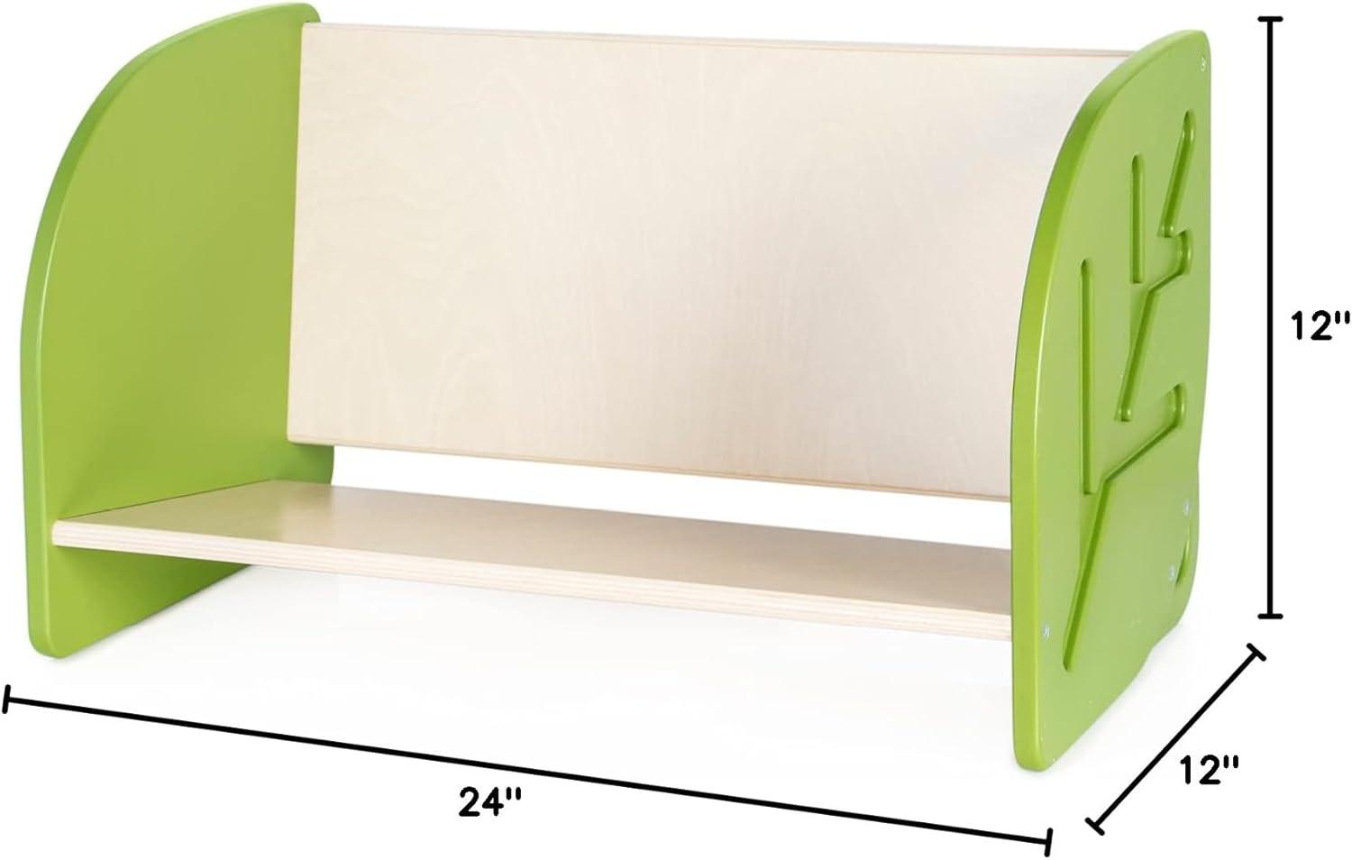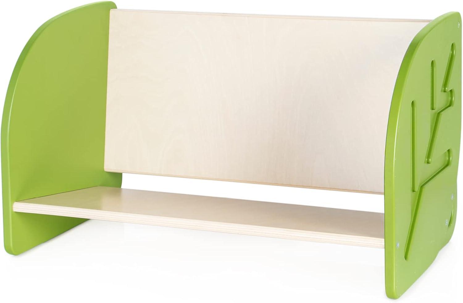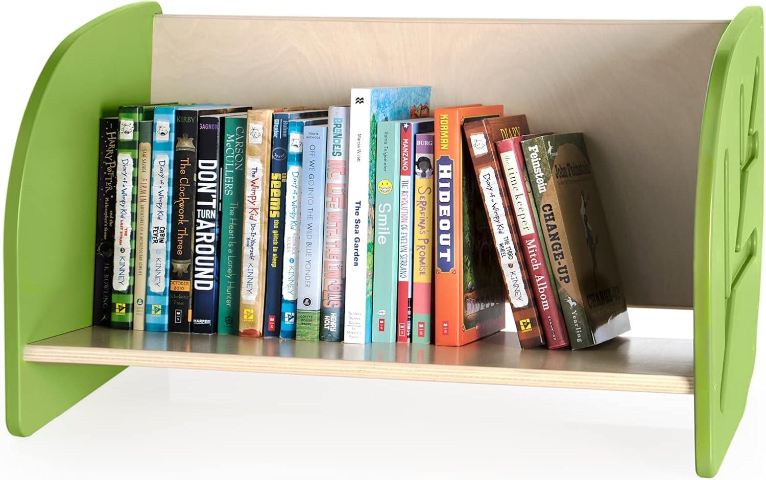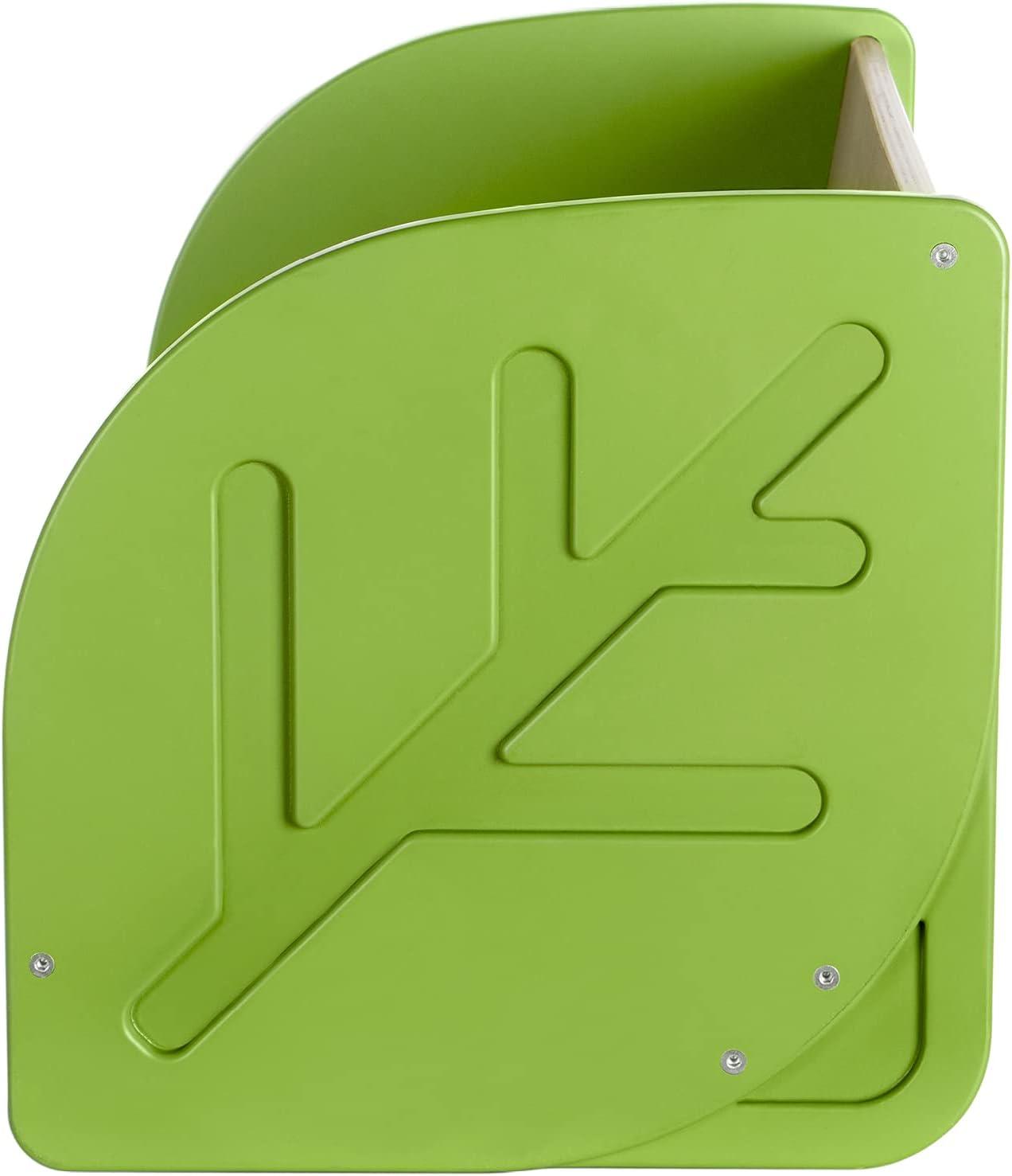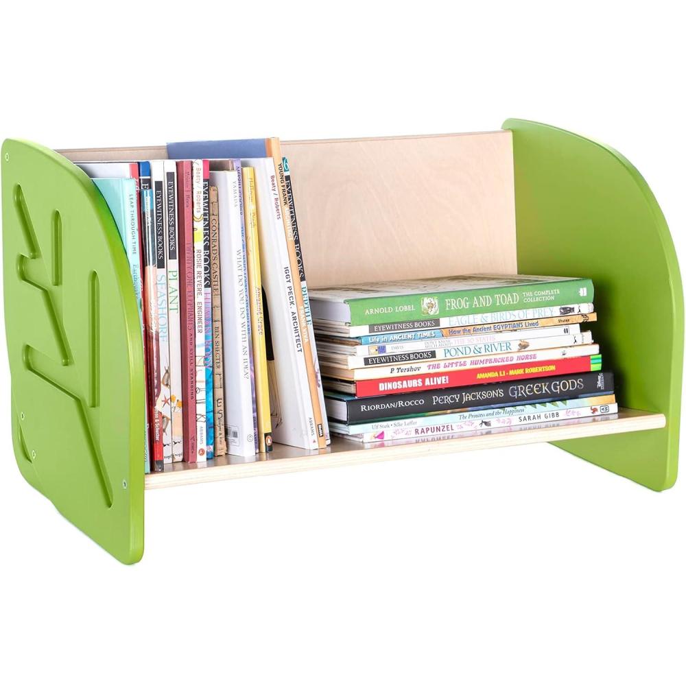 SPACE-SAVING, PLAYFUL BOOK DISPLAY AND STORAGE: Tabletop book browser with leaf-shaped accents fits in small spaces in classrooms, playrooms or children's bedrooms