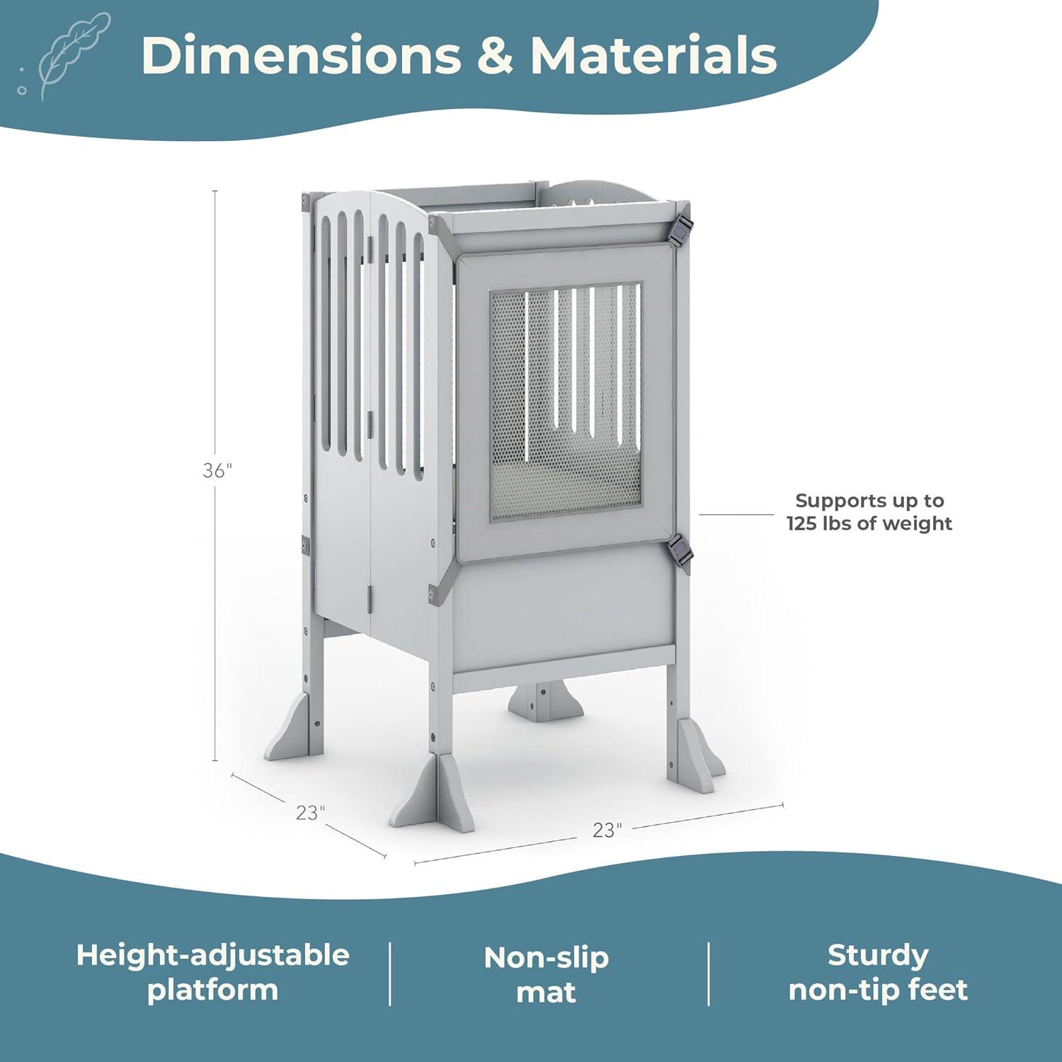 Guidecraft Contemporary Kitchen Helper® Stool and 2 Keepers - Gray: Folding, Adjustable Height, Wooden Cooking Step Stool for Toddlers | Little Kids Montessori Learning Furniture(Gray)