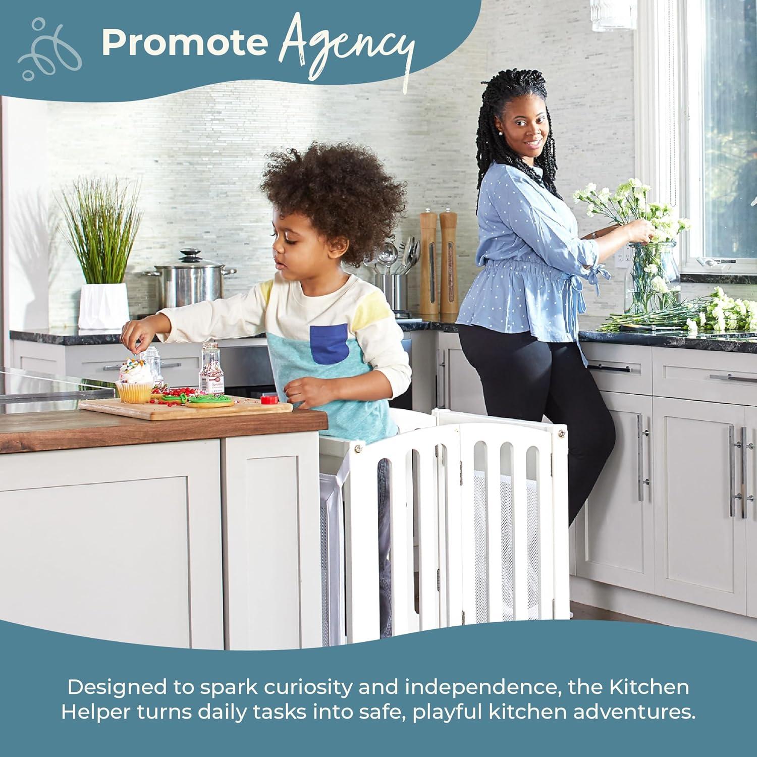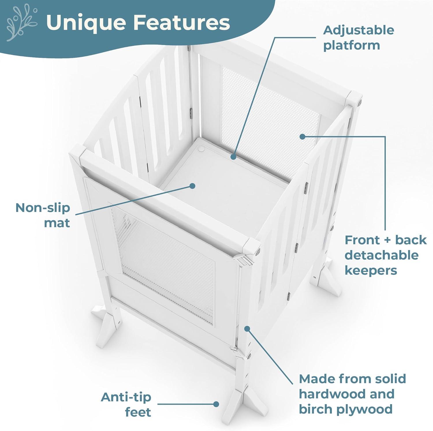 Guidecraft Contemporary Kitchen Helper® Stool and 2 Keepers – Gray: Folding, Adjustable Height, Wooden Cooking Step Stool for Toddlers | Little Kids Montessori Learning Furniture(White)