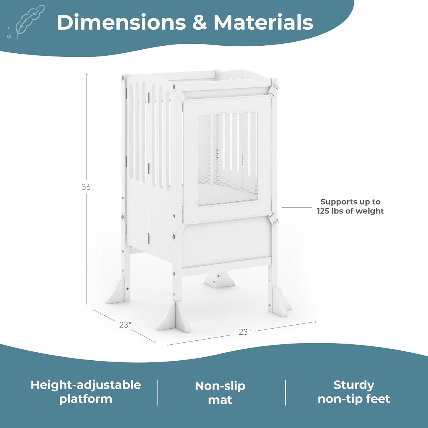 GROWS WITH YOUR CHILD: Adjust the platform to 15″ or 18″ to keep your stool at the perfect height for your growing child. Assembled dimensions: 23″L x 23″W x 36″H.