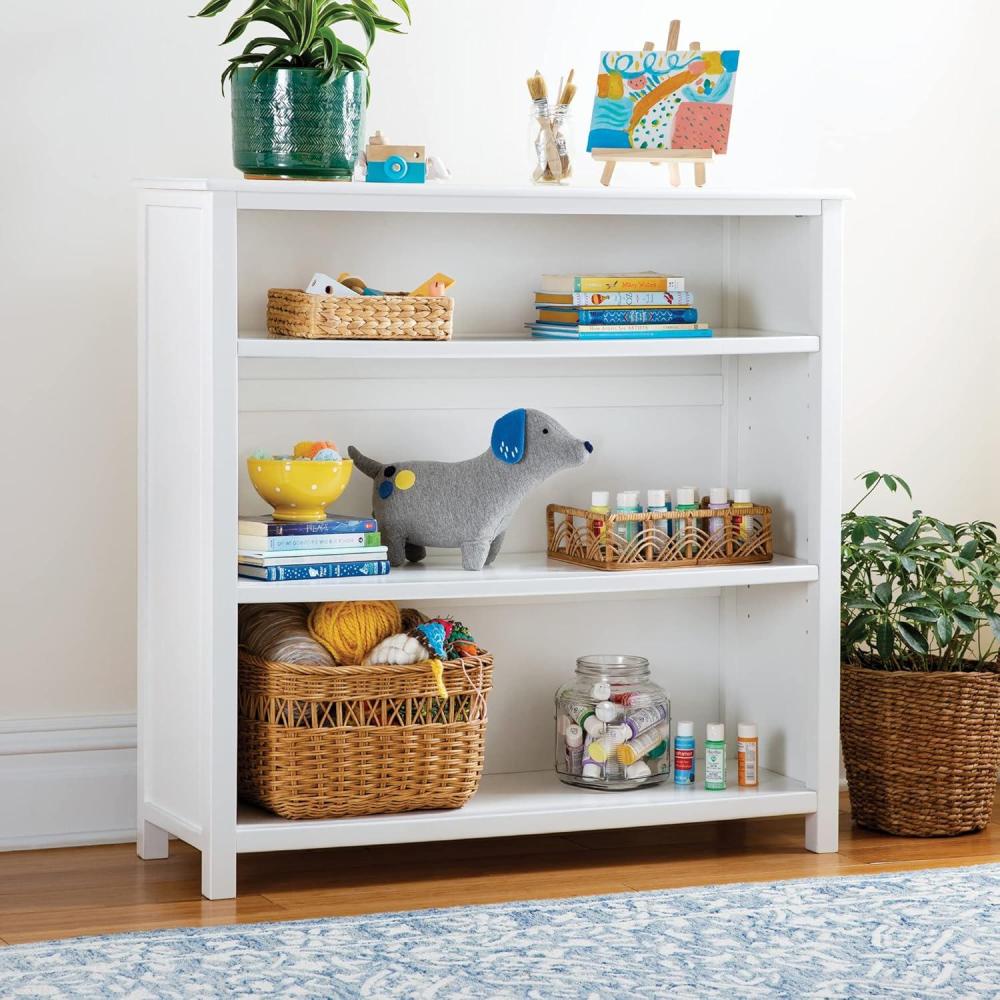 SINGLE-SIDED, OPEN SHELVING: Classic, wooden 3-shelf bookcase matches any bedroom or playroom design; available in a range of colors and sizes