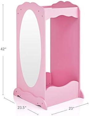 Guidecraft Dress Up Cubby Center – Pink: Toddler Clothing and Shoes Armoire, Dresser with Mirror & Side Hooks – Kids’ Room Furniture and Costume Storage(Pink)