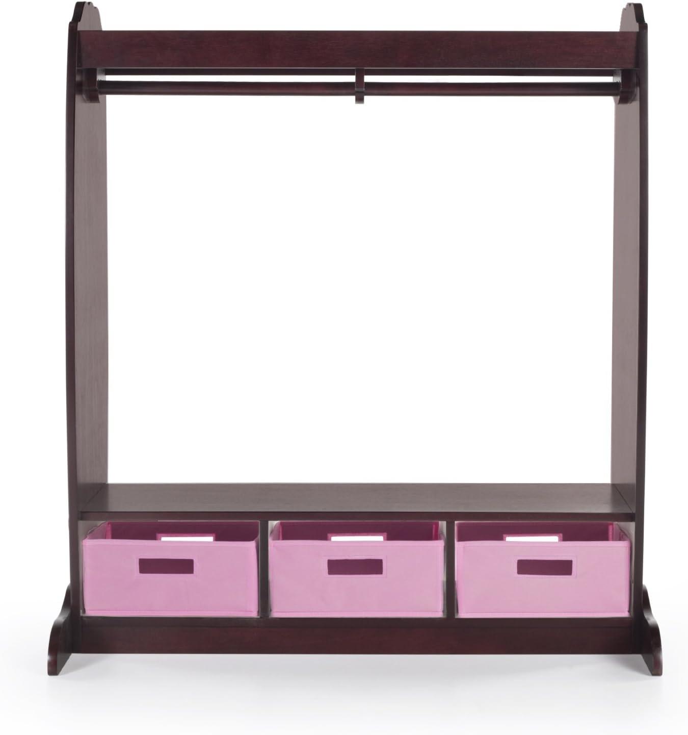Guidecraft Dress Up Storage – White: Dramatic Play Costume Rack with Mirror and Tray for Toddlers – Kids Armoire, Dresser with Fabric Storage Bins(Espresso)