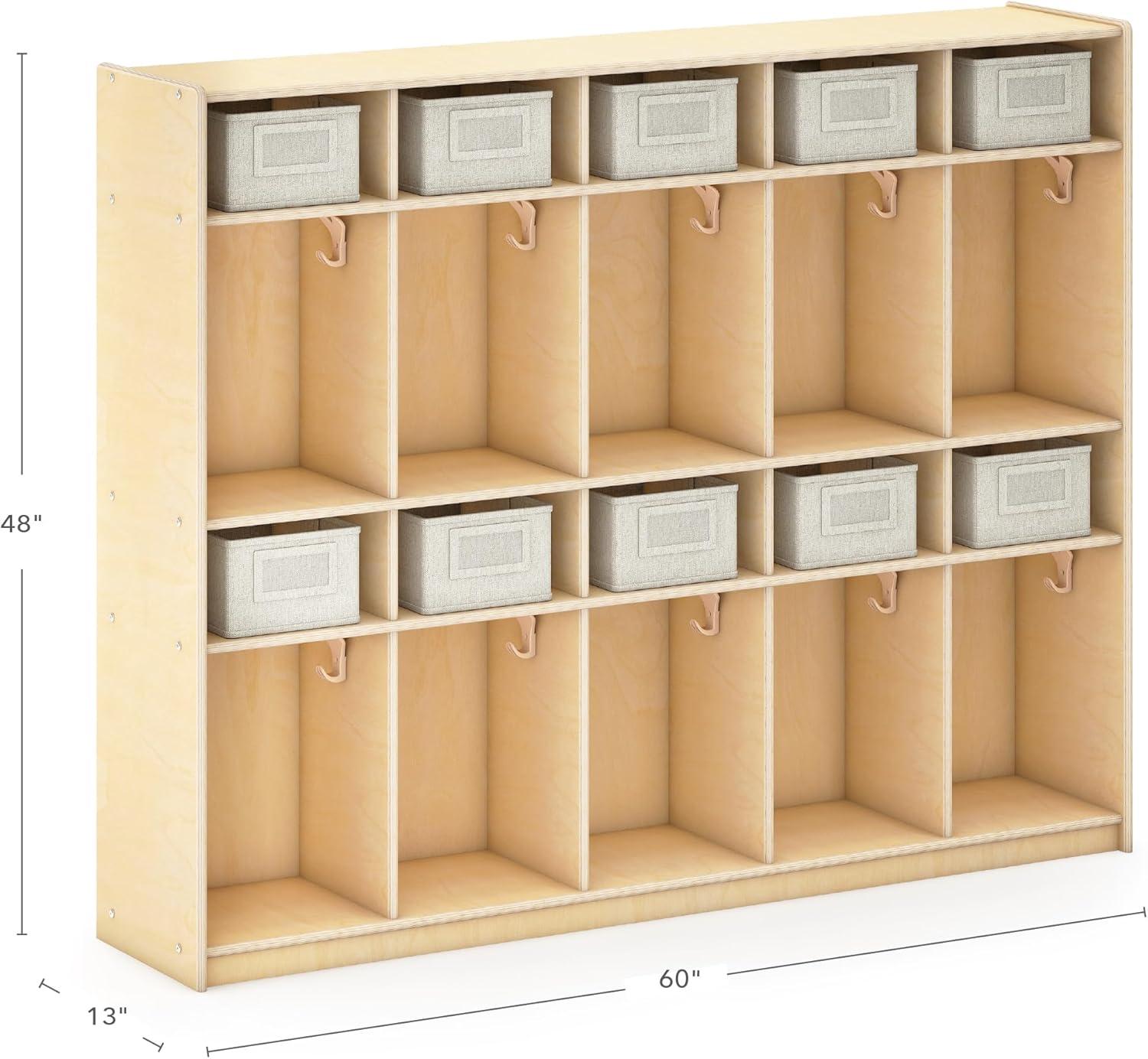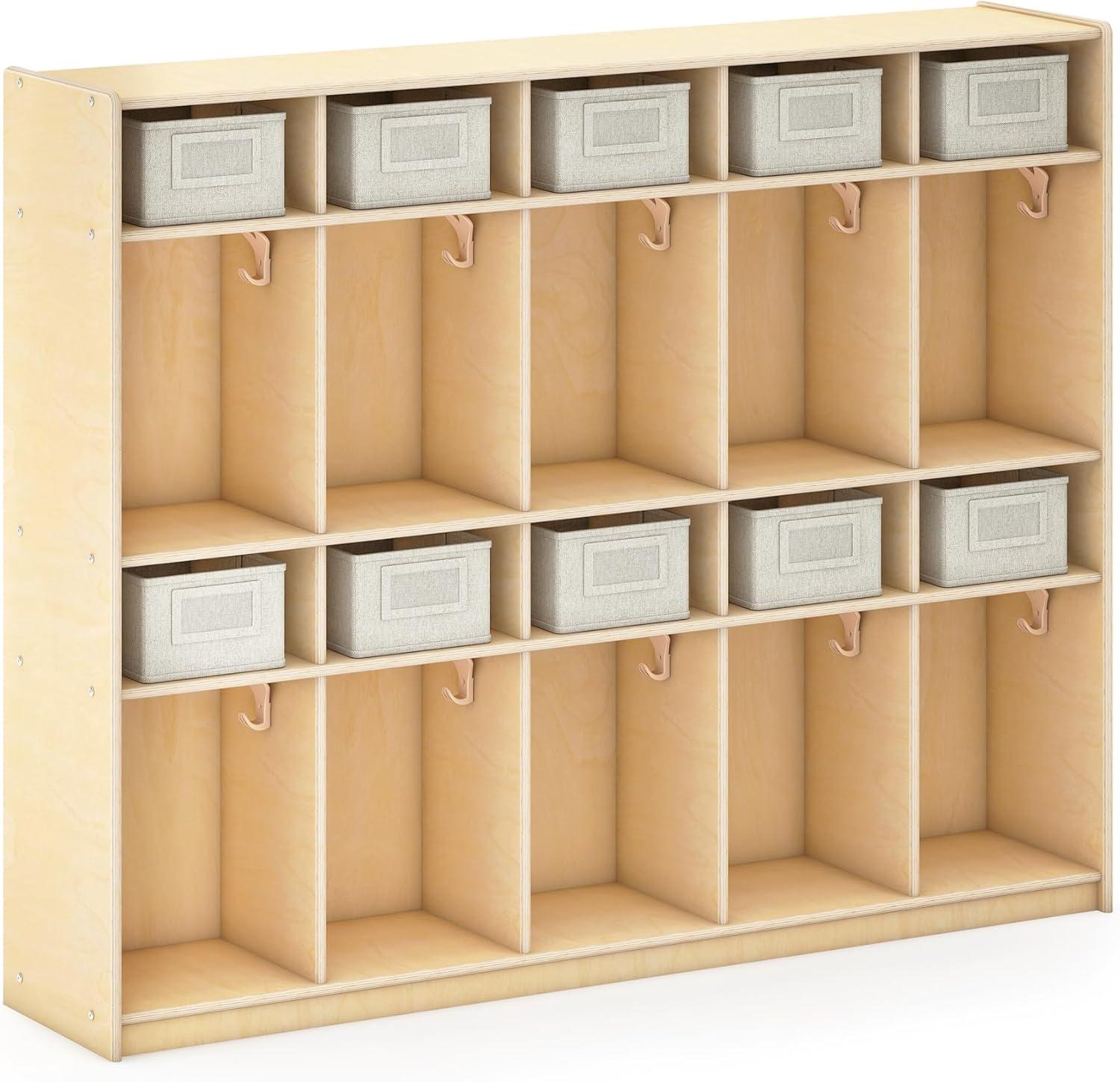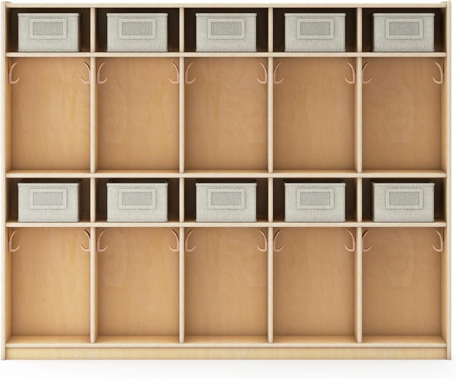 10-SECTION WOODEN STORAGE LOCKERS: Organize any children's classroom or learning environment with this spacious storage solution