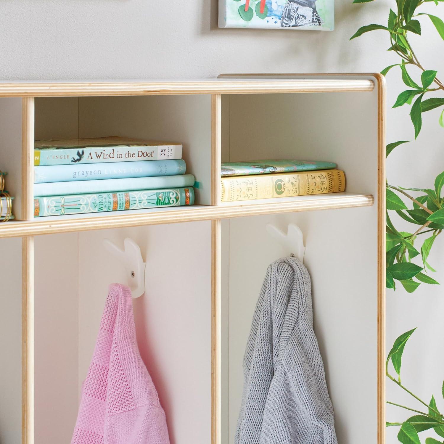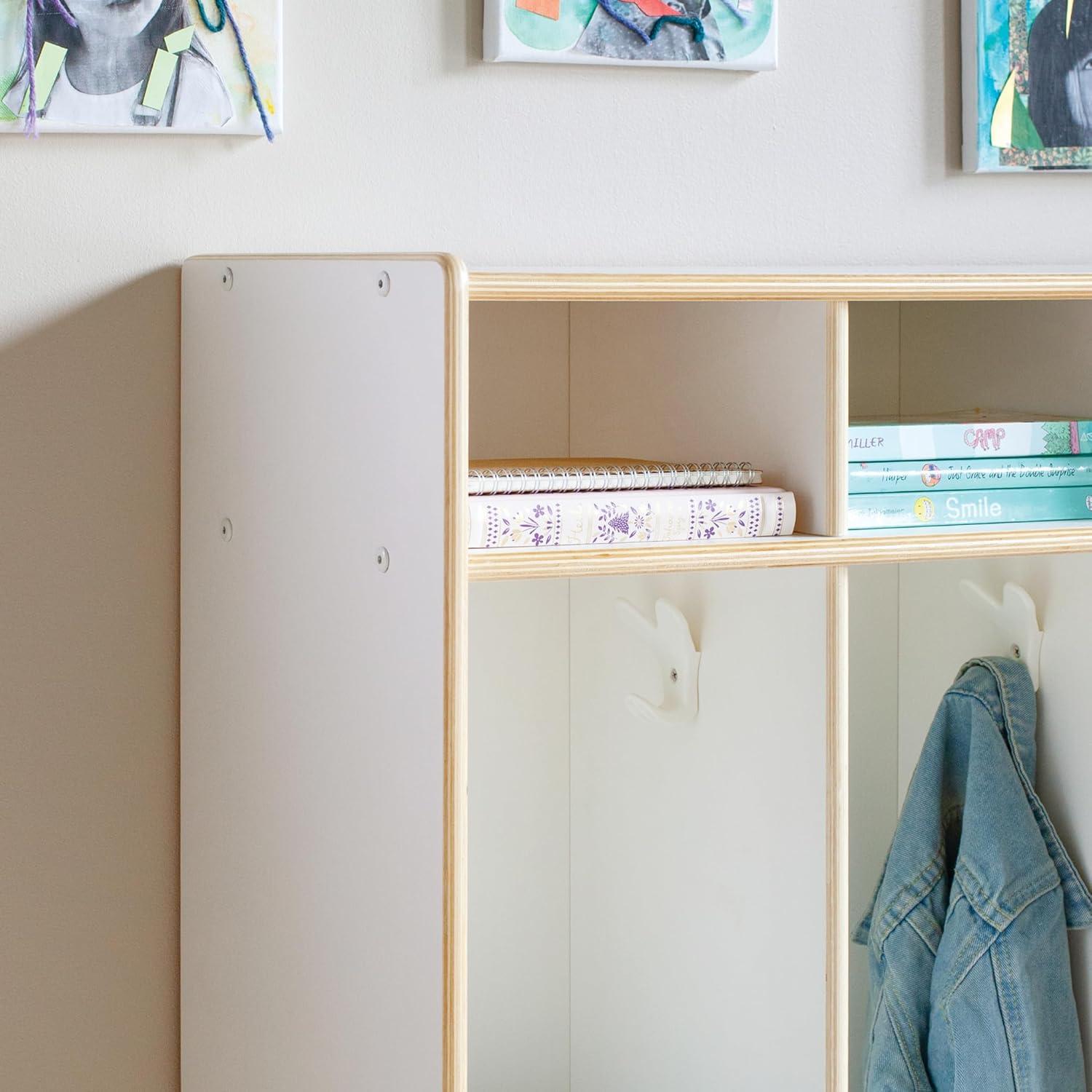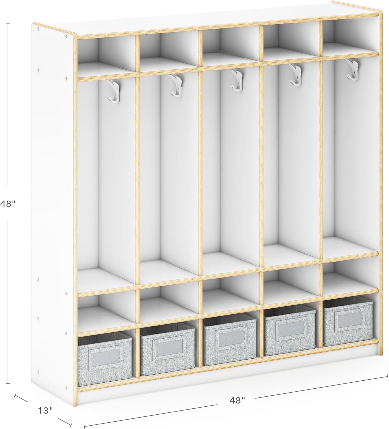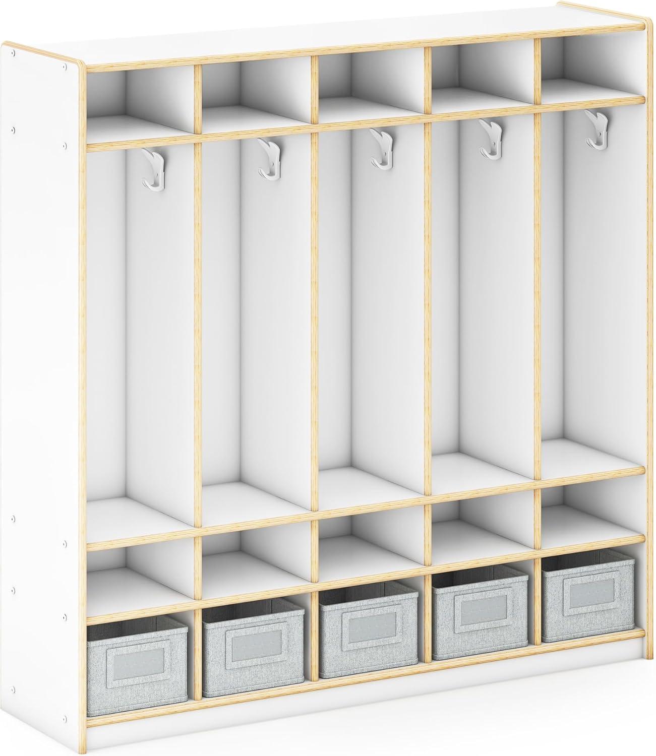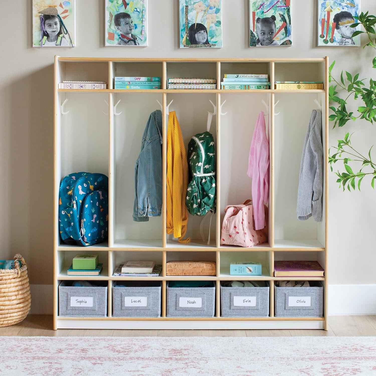 Guidecraft EdQ 5-Section Wooden Storage Locker for Classroom, Kids Natural Cubby Organizer with Shelves and Hooks for Coats(White)