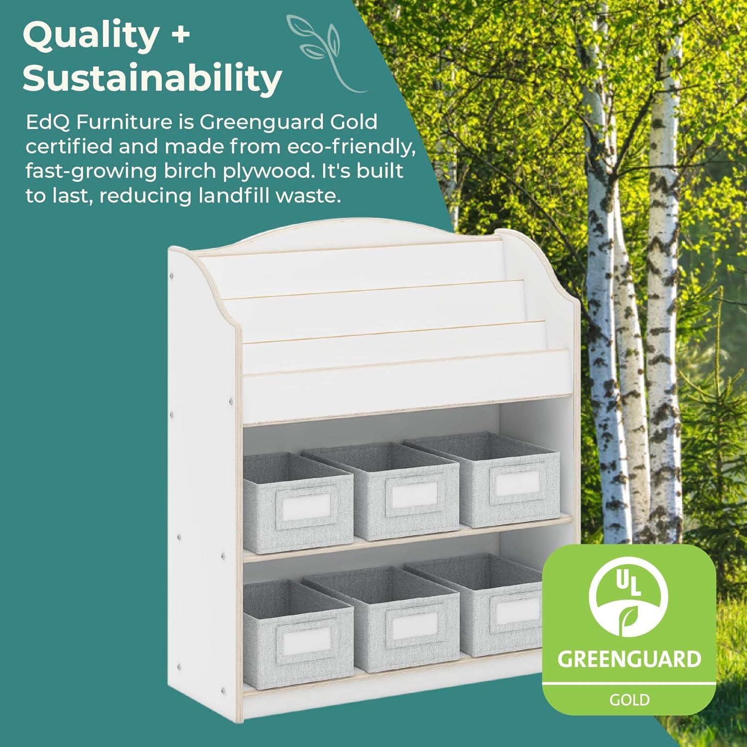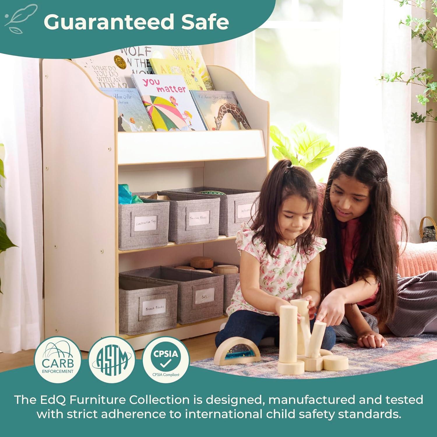 Guidecraft EdQ Book and Bin Browser Natural: 6 Fabric Storage Bins, Book Display and Toy Storage Organizer for Kids; School Supply Furniture(White)
