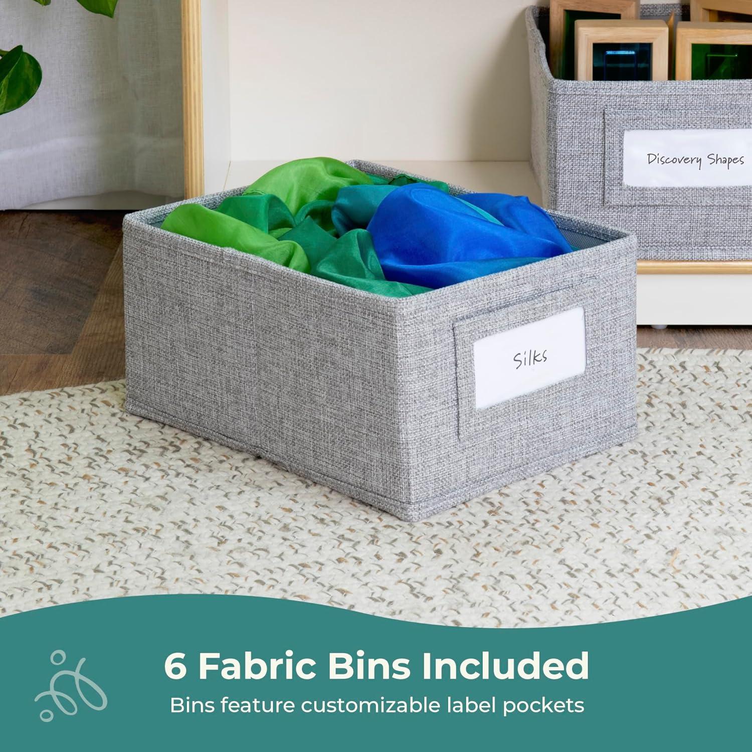 SIX FABRIC BINS INCLUDED: Keep toys, learning materials and books organized; each bin measures 8.2″W x 10.7″D x 5.3″H