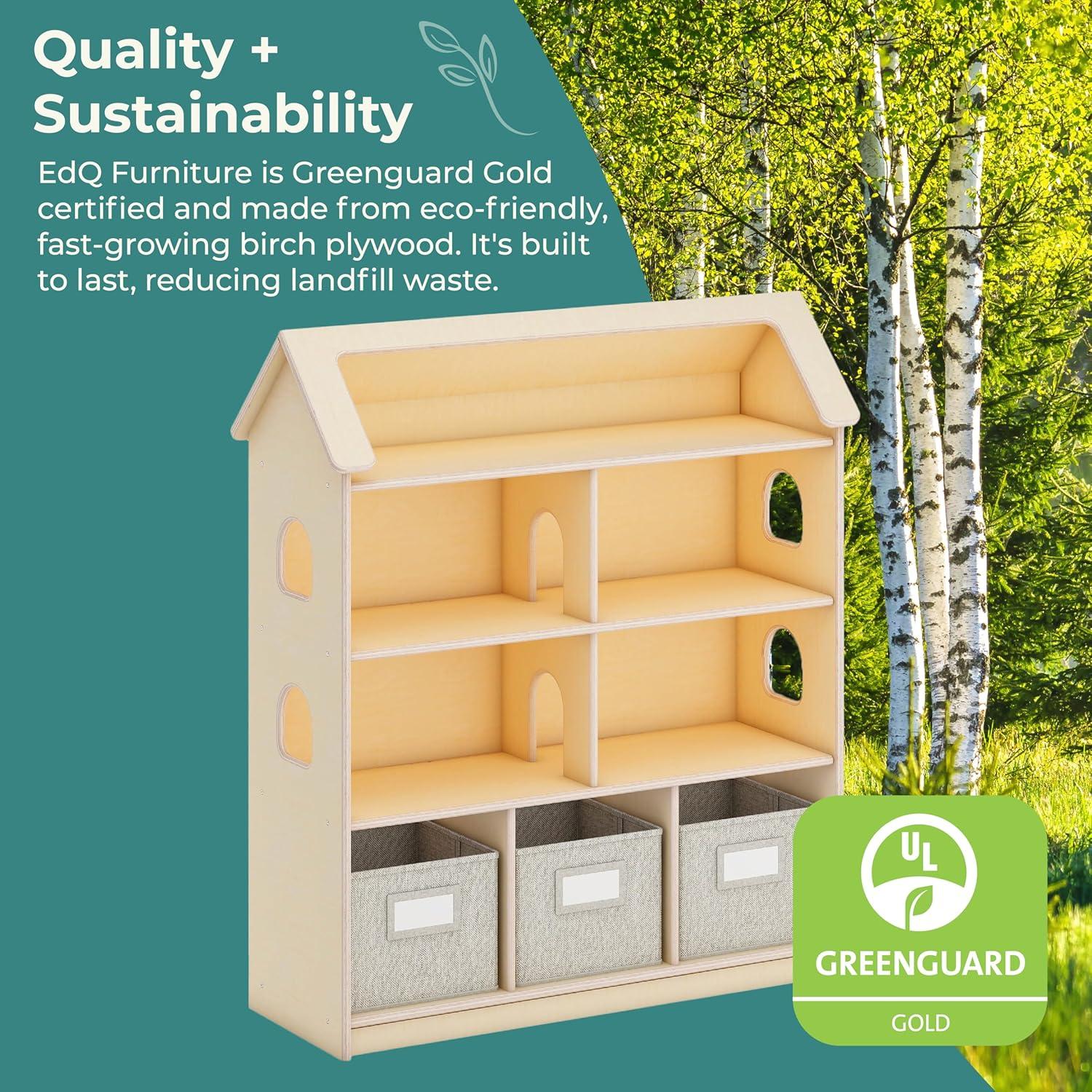 Guidecraft EdQ Dollhouse Bookcase - White: Bookshelf for Kids with Storage Bins for Dolls, Books, Toys, and School Supplies| Kid's Bedroom and Classroom Furniture(Natural)