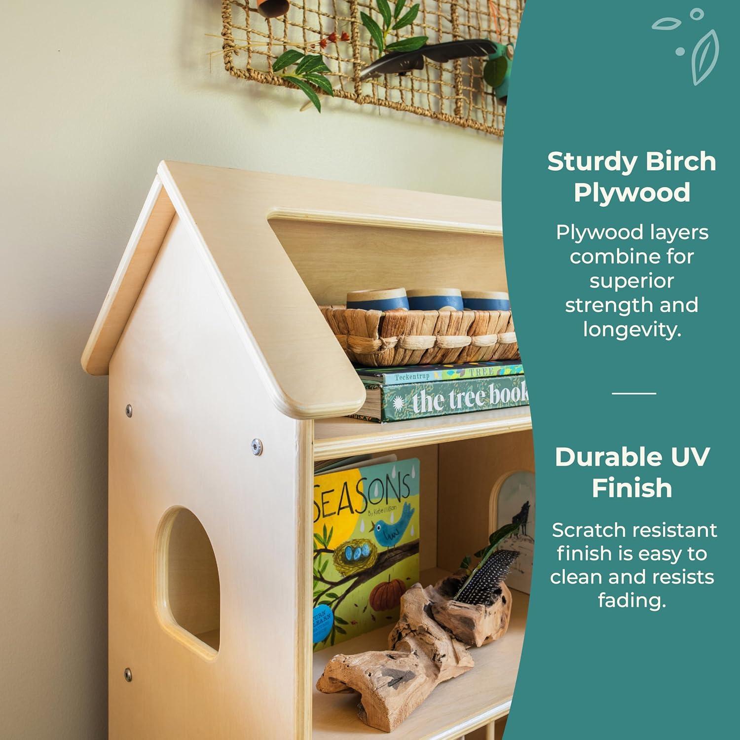 imageGuidecraft EdQ Dollhouse Bookcase  White Bookshelf for Kids with Storage Bins for Dolls Books Toys and School Supplies Kids Bedroom and Classroom FurnitureNatural