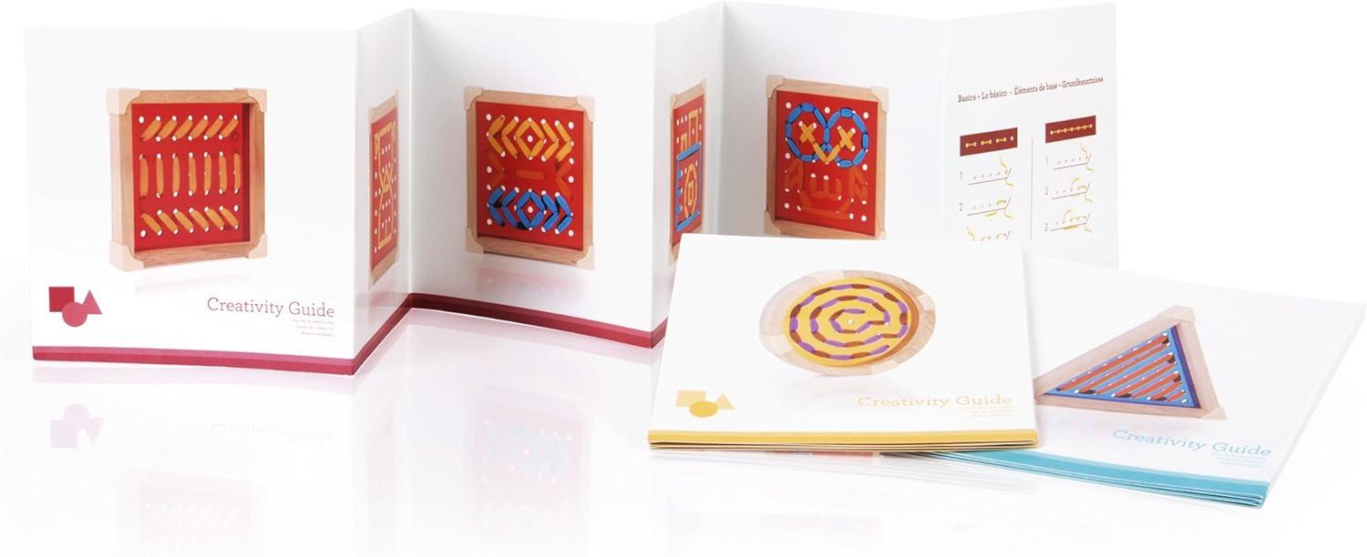 Colorful set includes 3 lacing creativity guides with examples of various patterns and designs.