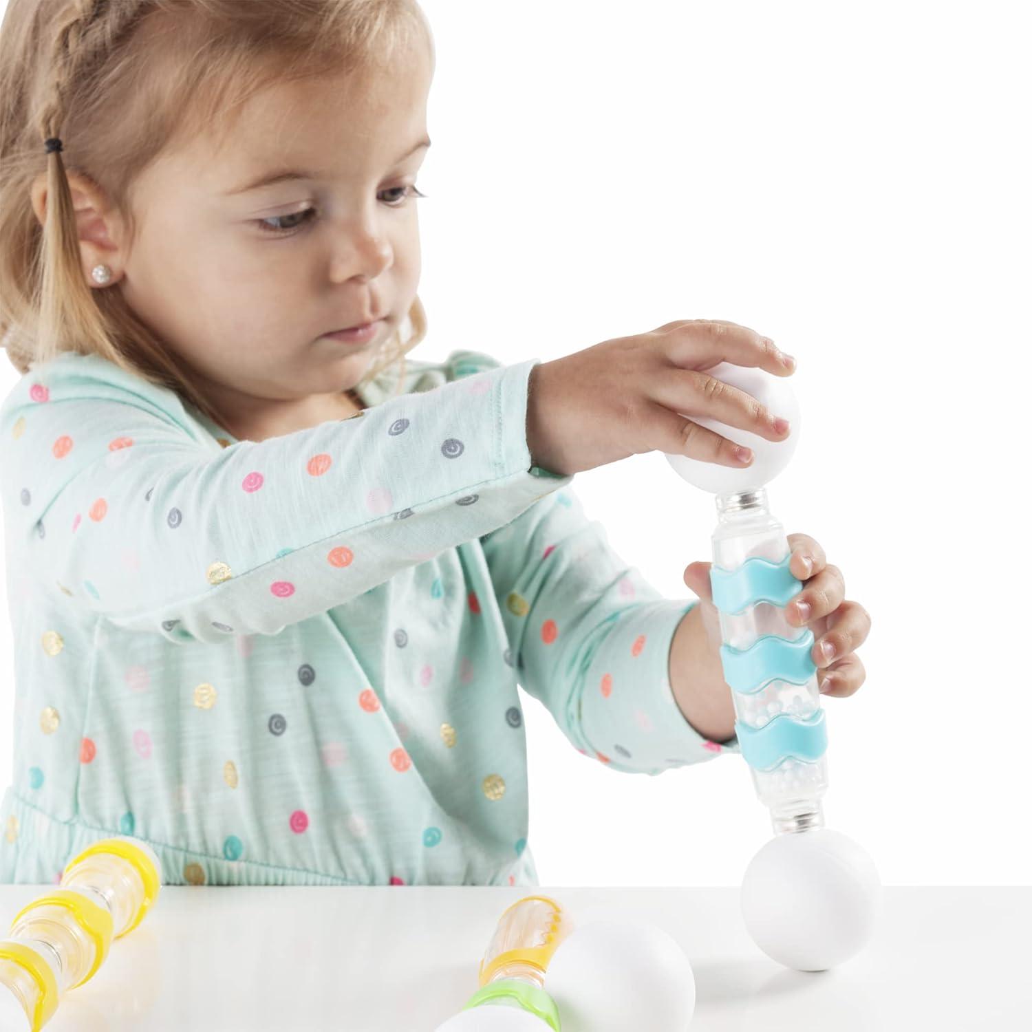 30 piece set includes over-sized soft plastic rods and balls, with 4 unique soft-touch textures.