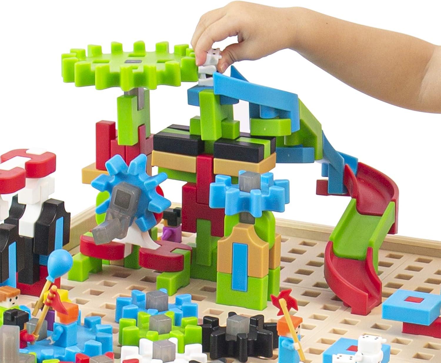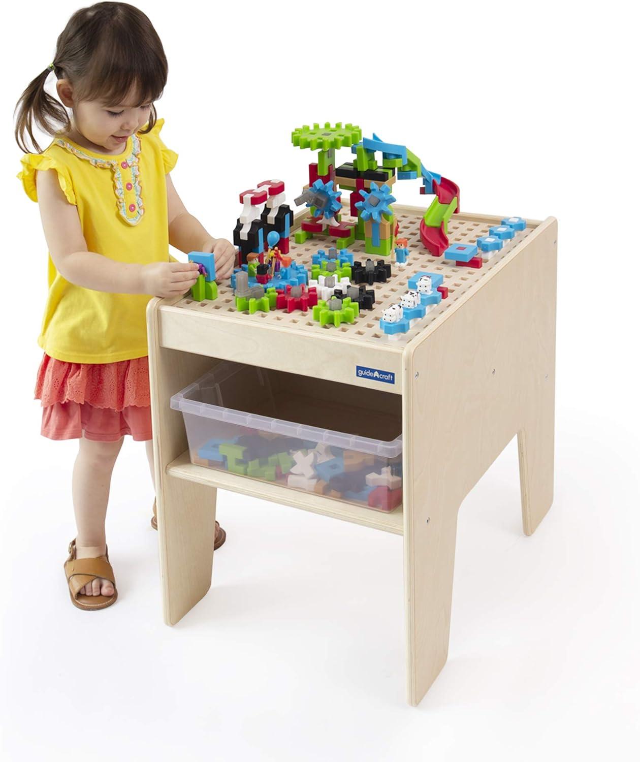 Children 3 and up will develop social emotional and STEM-based skills during hands-on, collaborative playtime around the IO Blocks STEM Table. This all-in-one set includes a durable, easy-to-clean birch table with raised grid tabletop for stabilized builds using the 200 gears, slides IO people and standard IO Blocks pieces. Keep pieces organized and accessible using the included 2 clear storage bins. Adult assembly required. Table measures 22″ W x 16.5″ D x 20″ H (55cm W x 41cm D x 50cm H).