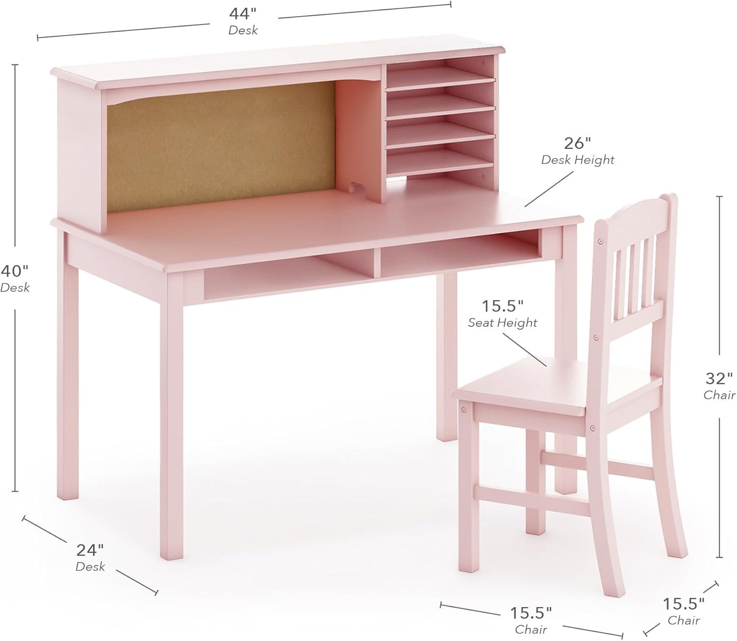 Guidecraft Kids Media Desk and Chair Set - White: Kids Writing Desk with Hutch and Storage Shelves, Computer Workstation with Corkboard, Wooden Desk Set for Boys and Girls(Pink)