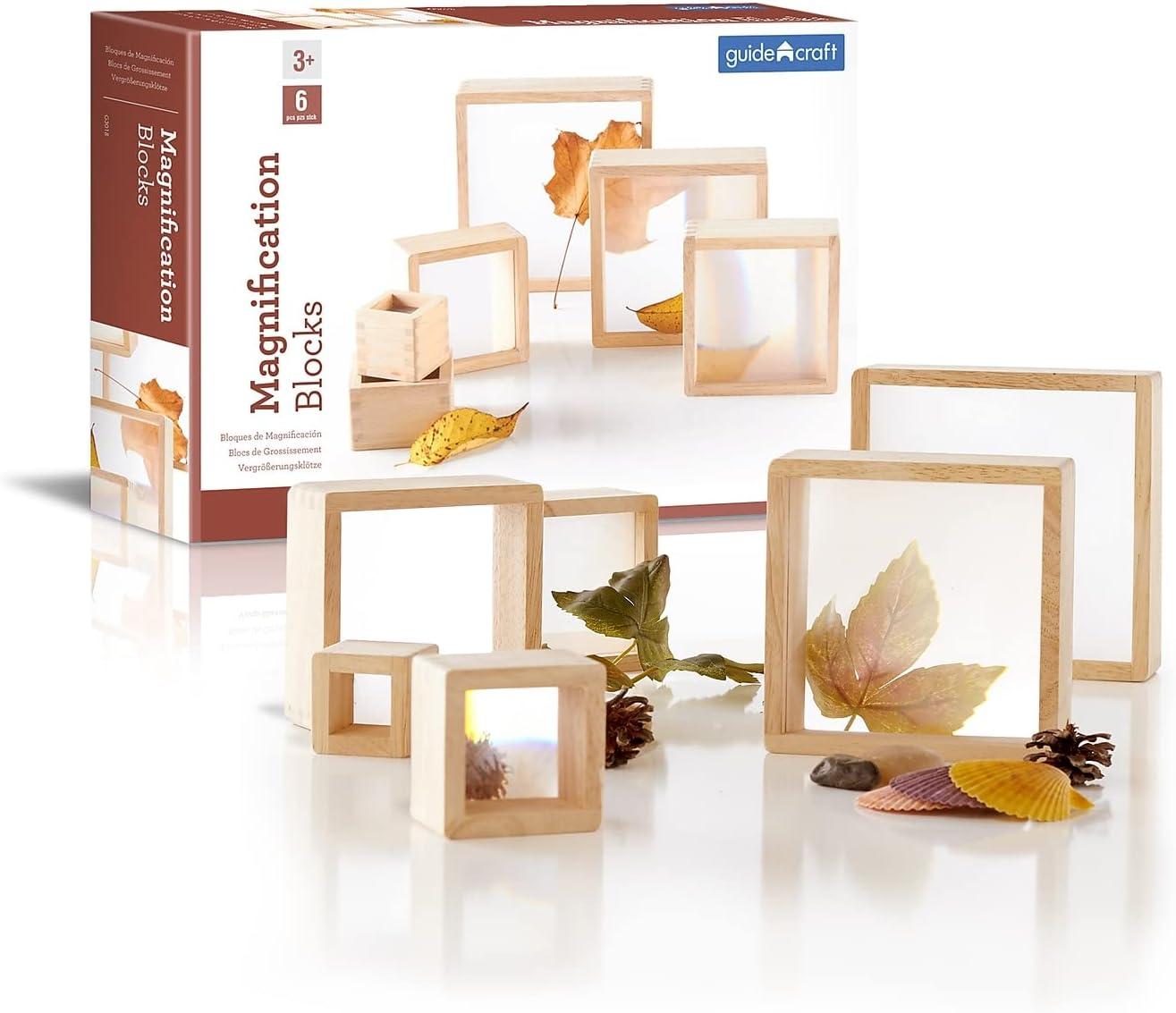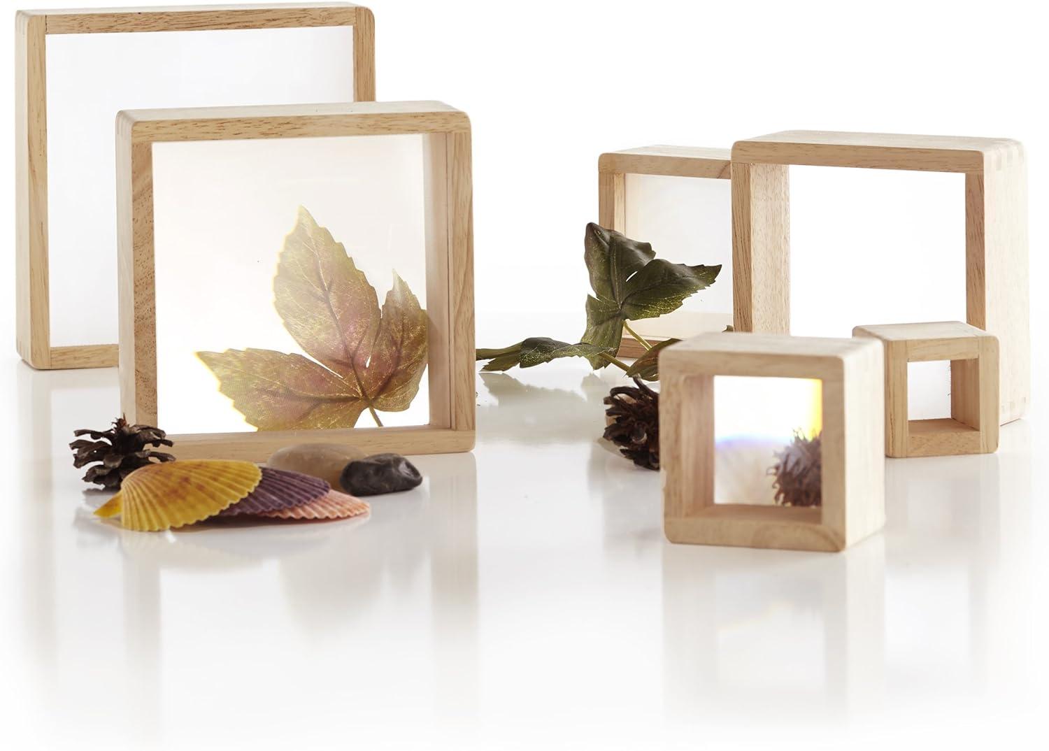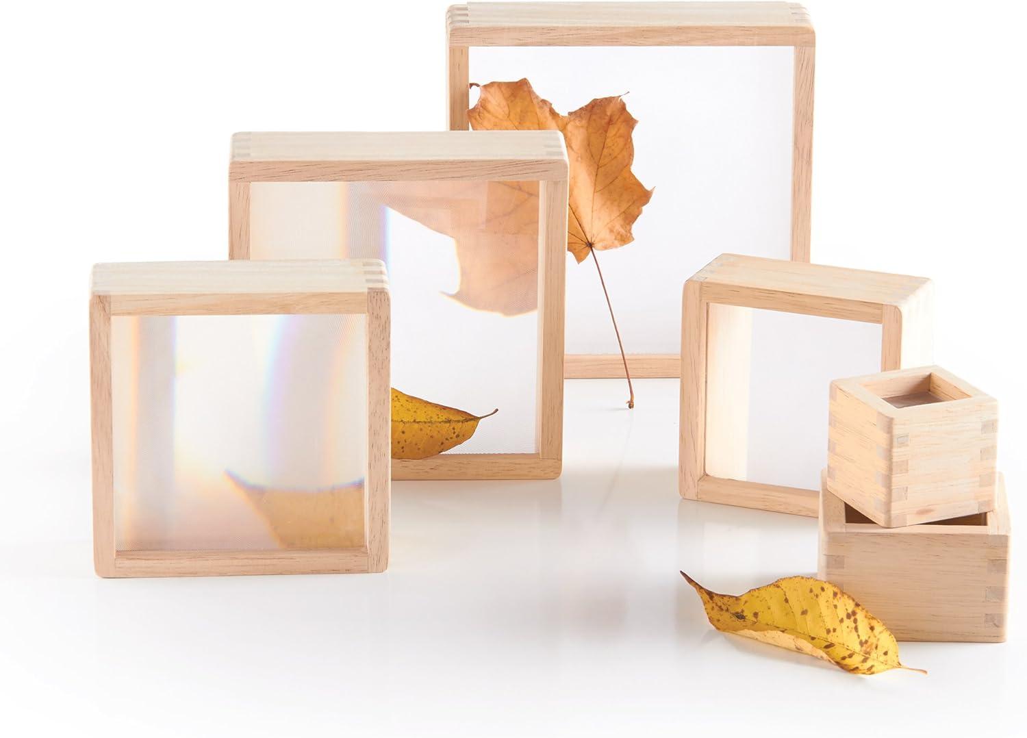 Hardwood block set with inset lenticular windows for ages 2+
