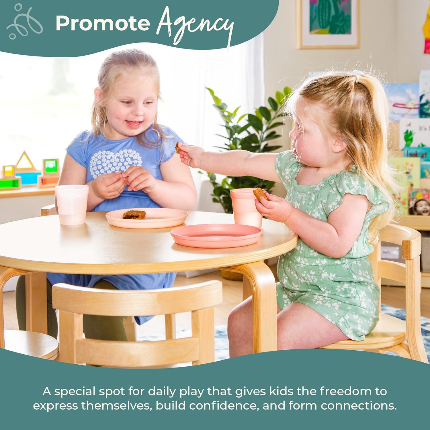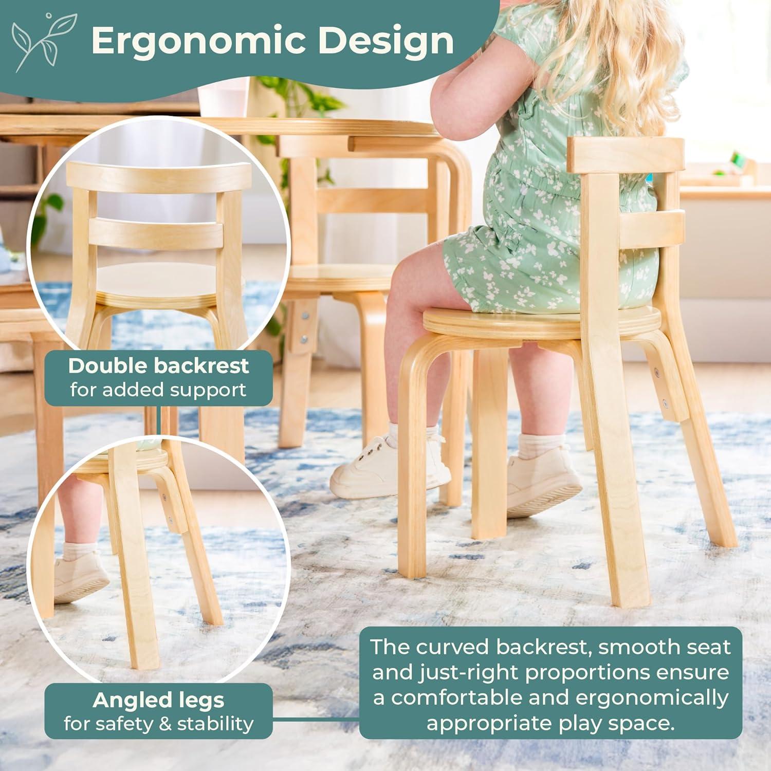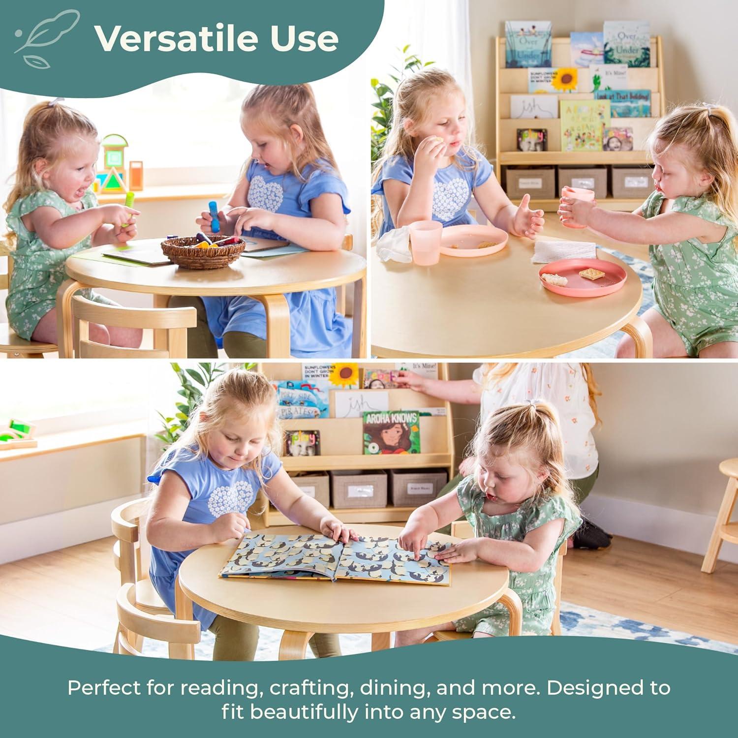 Guidecraft Nordic Table and Chair Set- Natural: Wooden Kids Table with 4 Chairs, Bentwood Classroom Activity Seating for Crafting & Reading, Kids Play Montessori Furniture for Playroom & Homeschool(Natural)