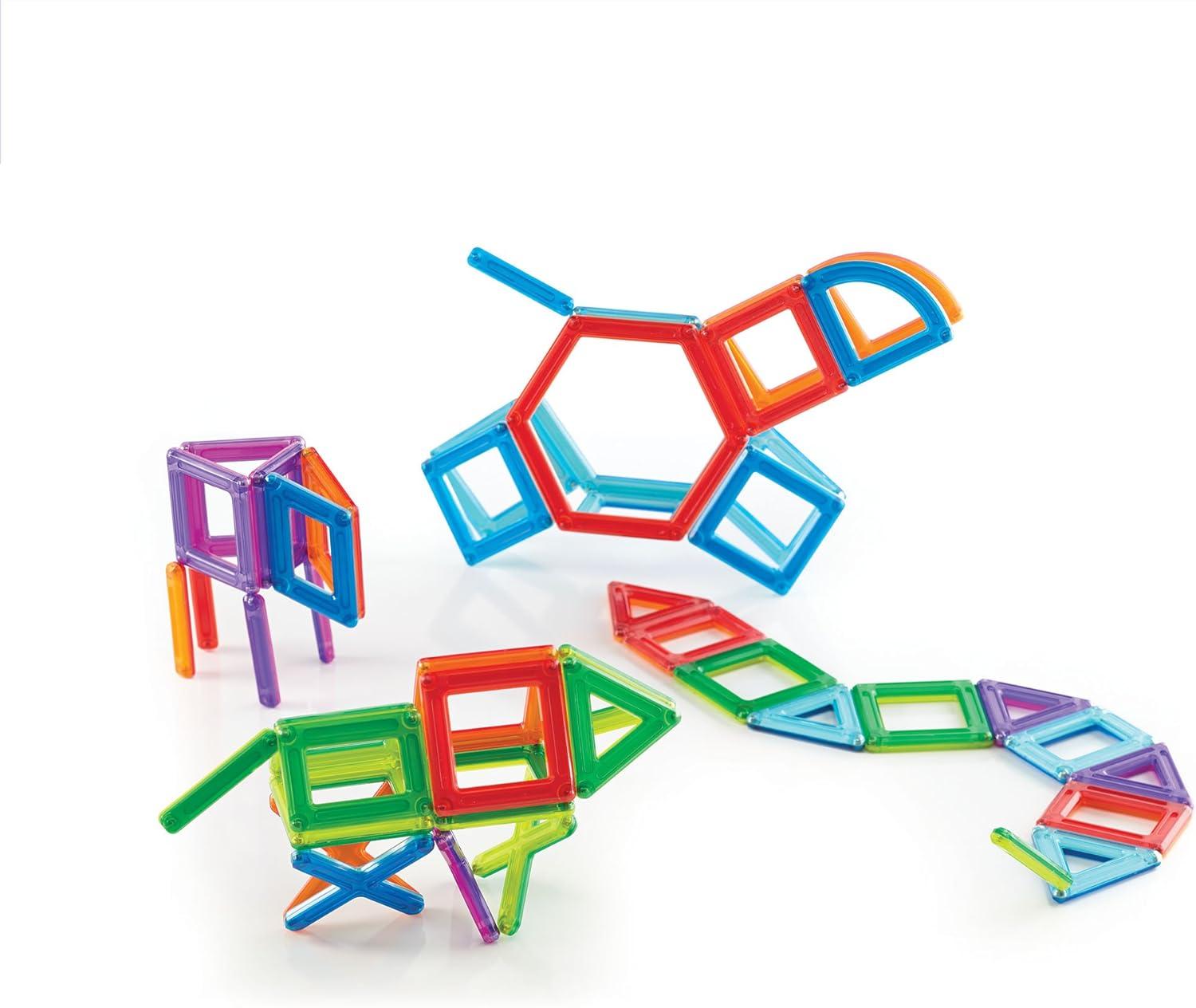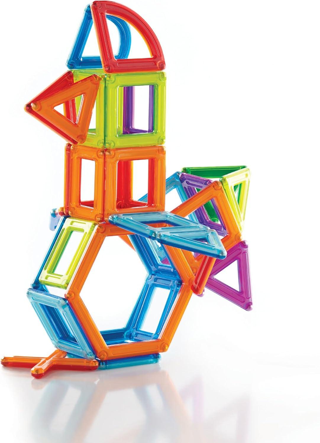 Open-ended magnetic building set includes 74 non-repelling magnetic shapes and a Creativity Guide, to inspire builders of all ages
