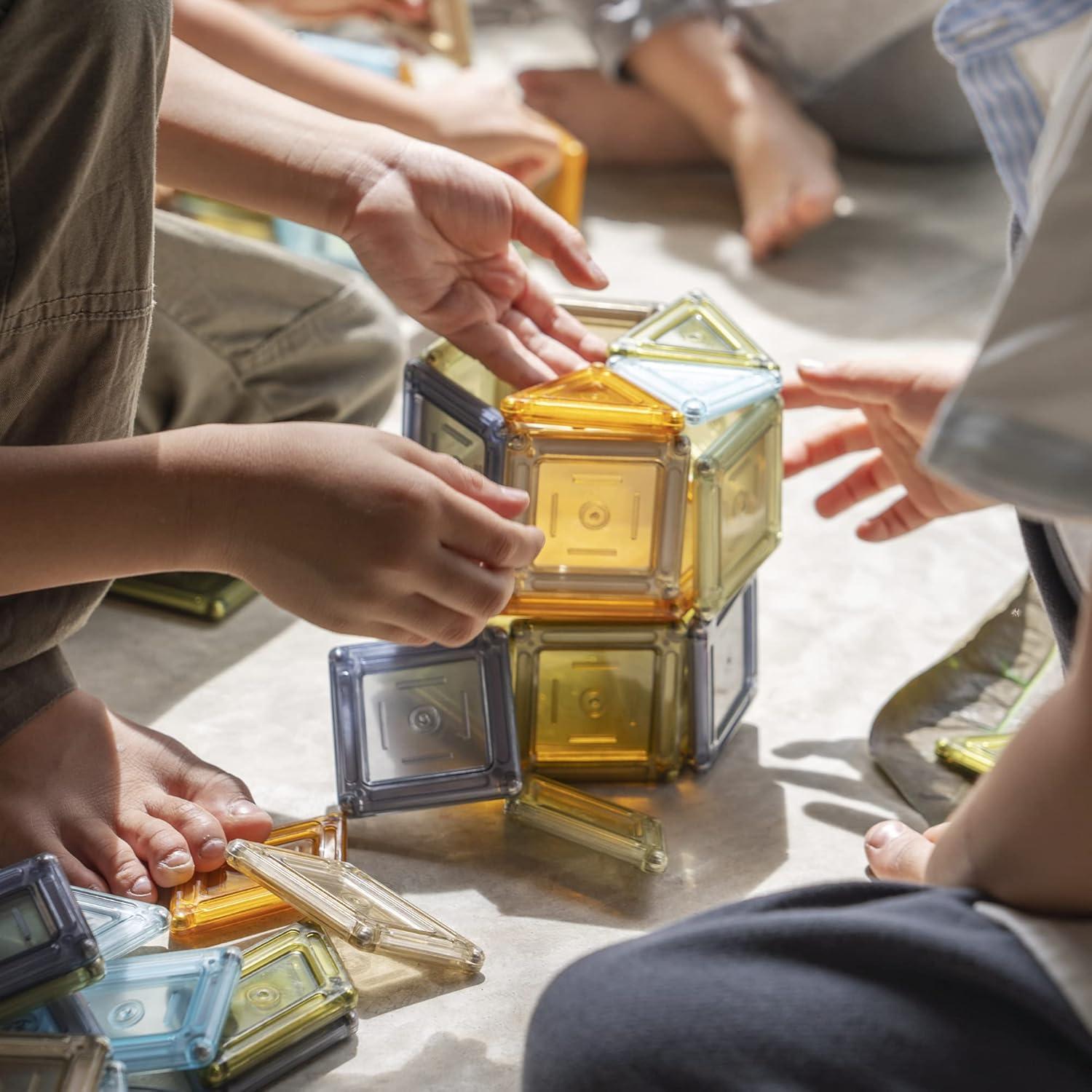 Open-ended magnetic construction toy integrated with light play, natural play and loose parts theory