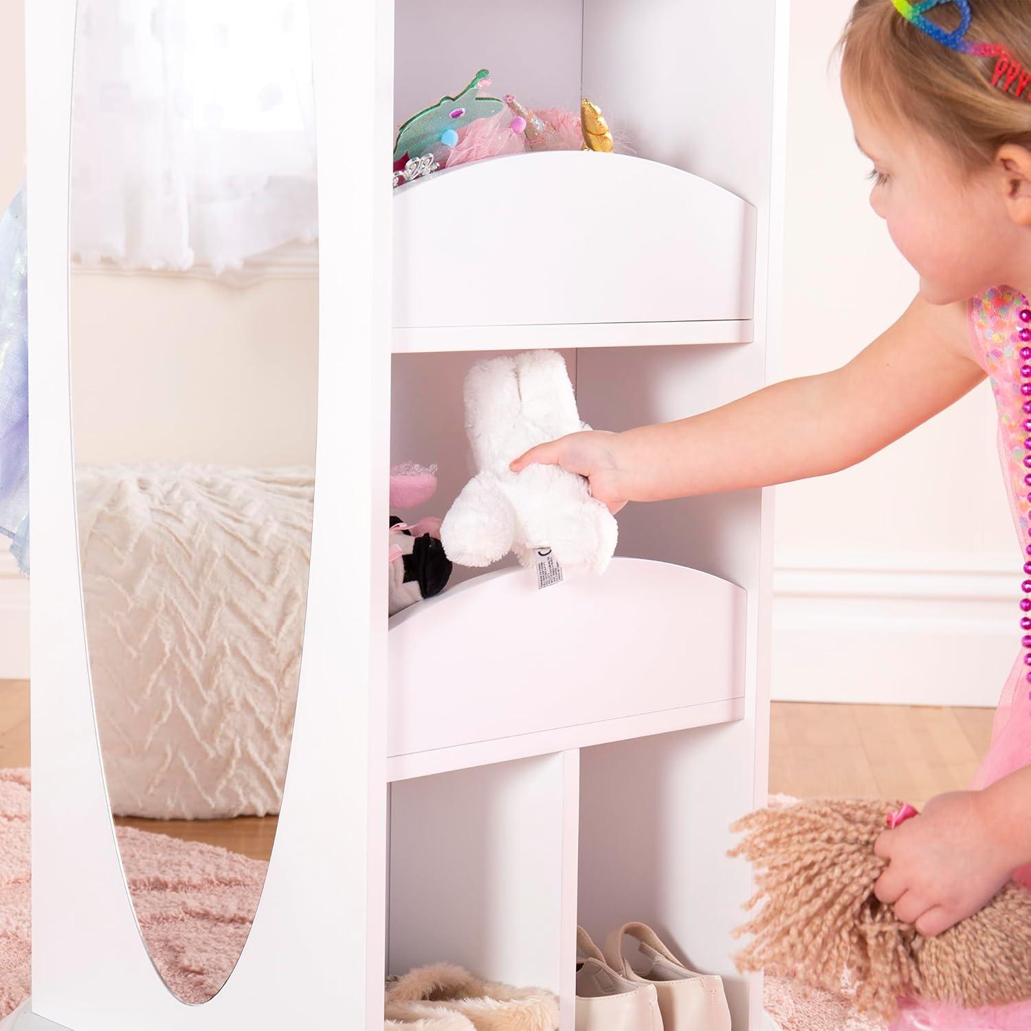 Guidecraft Rotating Dress Up Storage – Natural: Kids’ Pretend Play Storage Shelves and Hangers with 2 Mirrors & Hooks – Toys and Clothes Organizer for Toddlers Playroom(White)
