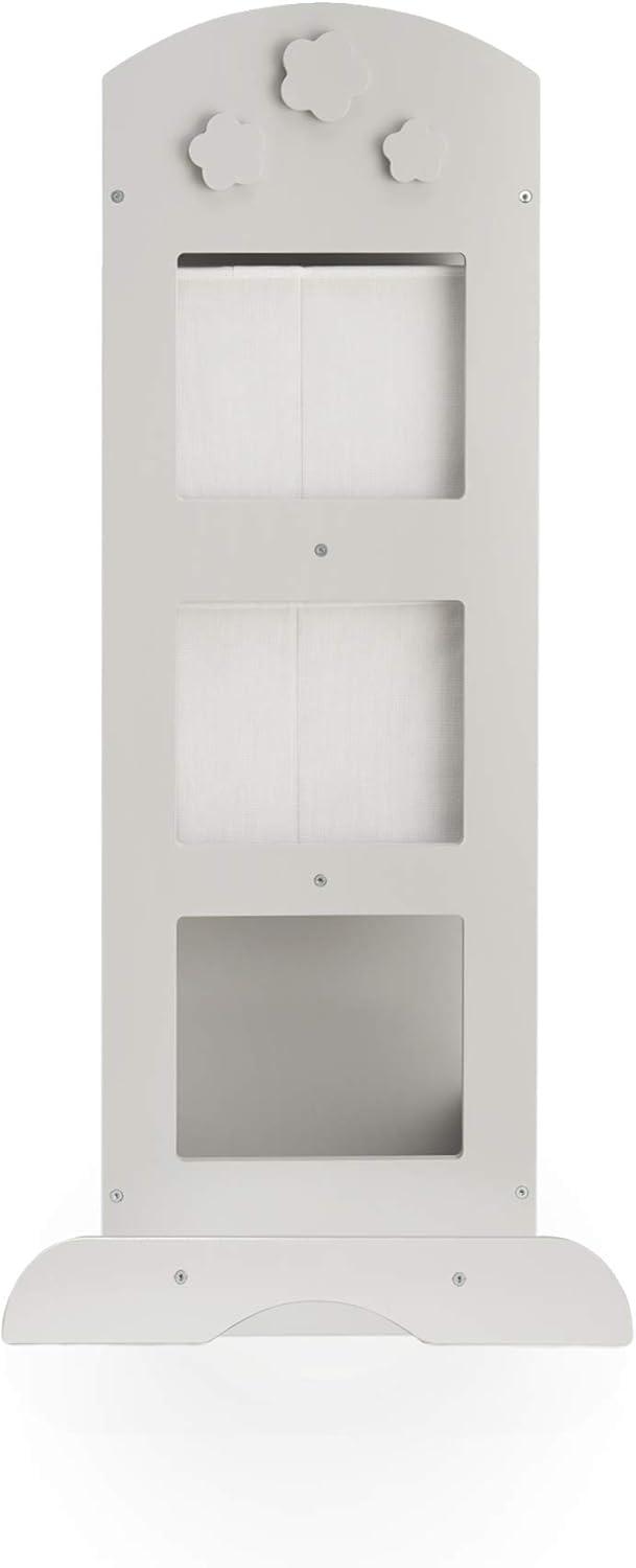 SPACIOUS STORAGE SPACE: The interior space easily accommodates all your child’s favorite outfits, while the attached three shelf storage is perfect for hats, purses and crowns. A raised bottom lip provides additional space along the bottom for shoes.