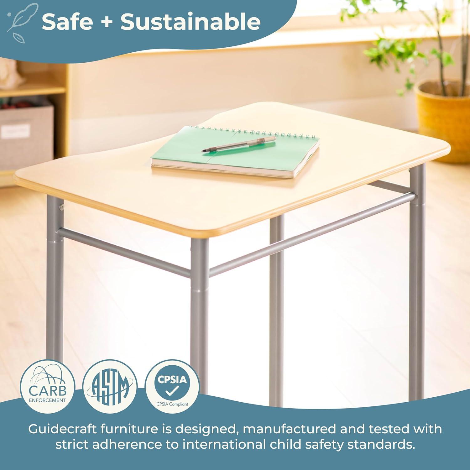 Guidecraft Standing Modular Desk for Adults and Kids: Adjustable Height Desk with Metal Legs for Home, Office, Classrooms and More(Trapezoid)