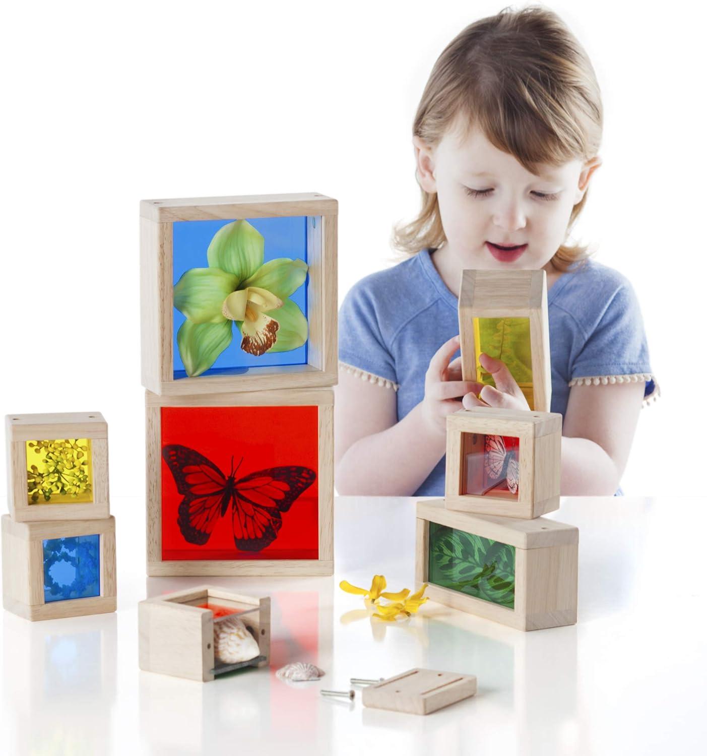 Guidecraft Treasure Blocks – Clear: Smooth Wooden Observation Stacking Blocks with Transparent Windows, Educational Toy for Kids(Clear)