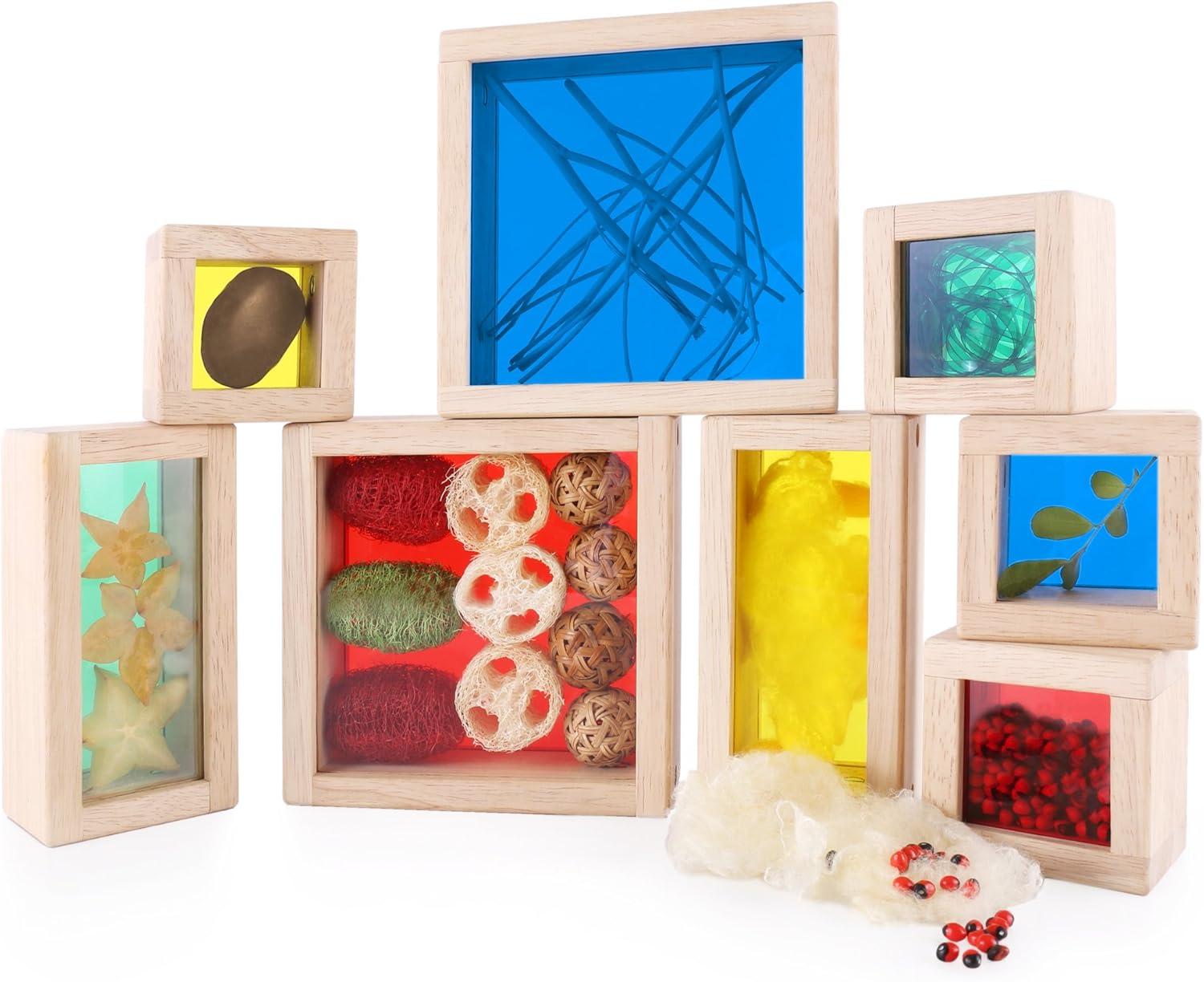 Guidecraft Treasure Blocks - Clear: Smooth Wooden Observation Stacking Blocks with Transparent Windows, Educational Toy for Kids(Primary)