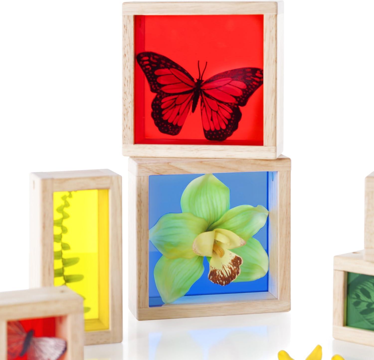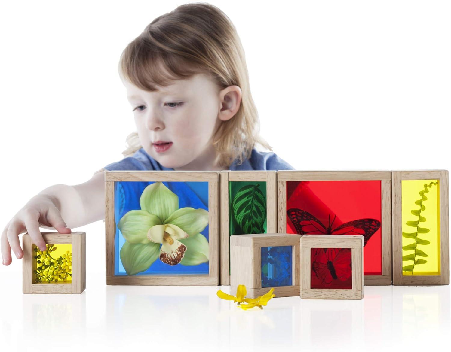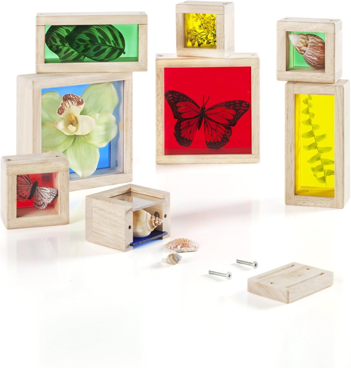 imageGuidecraft Treasure Blocks  Clear Smooth Wooden Observation Stacking Blocks with Transparent Windows Educational Toy for KidsPrimary