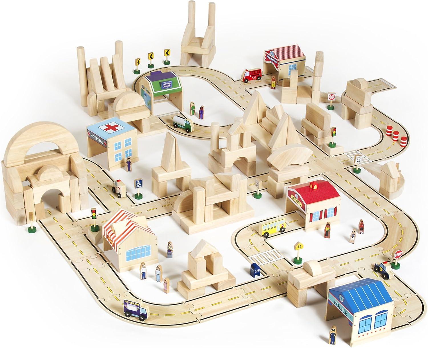 Coordinates with the Guidecraft Roadway System and Community Buildings set