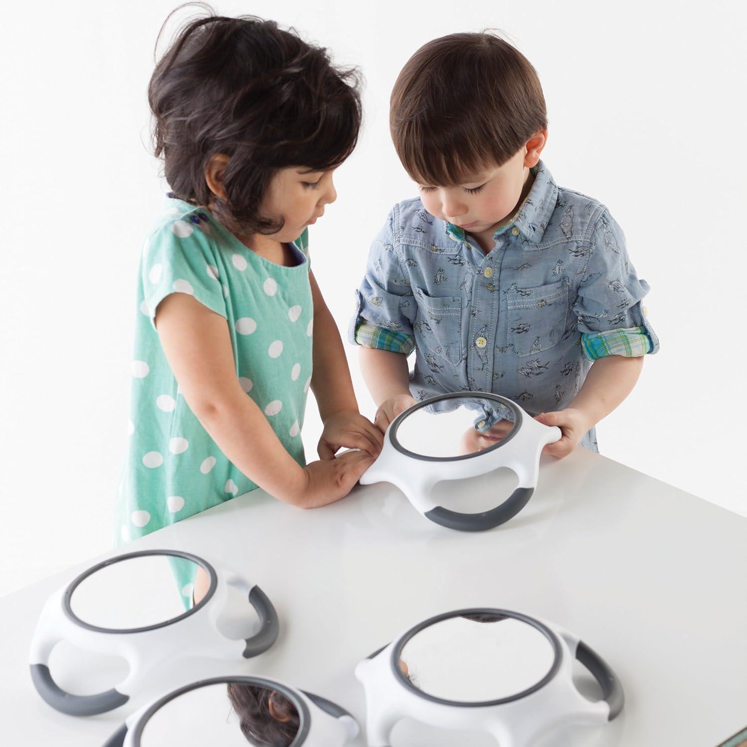 Guidecraft ZMirrors - Set of 4 Soft Touch Handle Grip Mirrors for Toddlers - Reflection and Sensory Exploration, Team Social Emotional Curriculum Educational Toy
