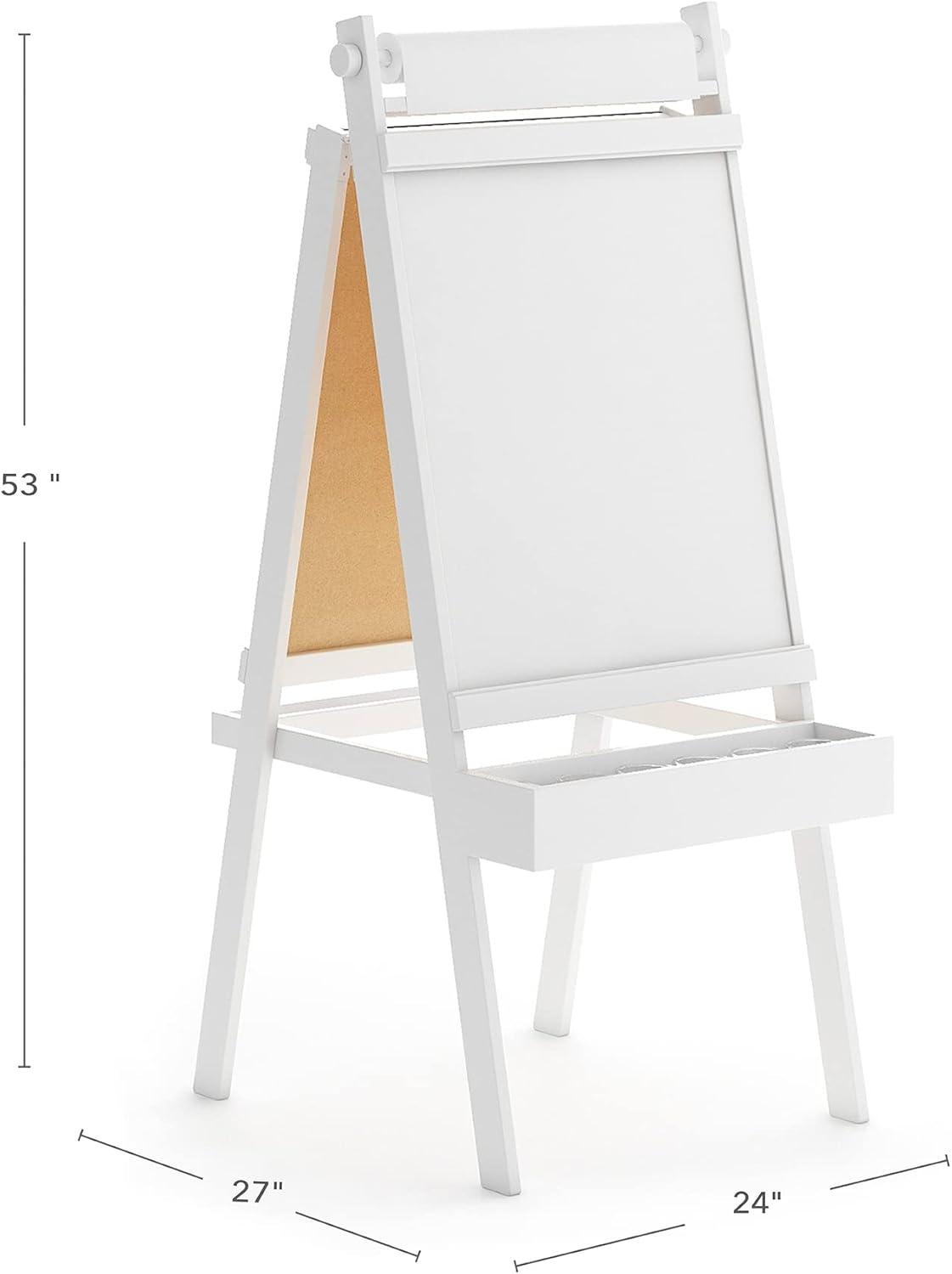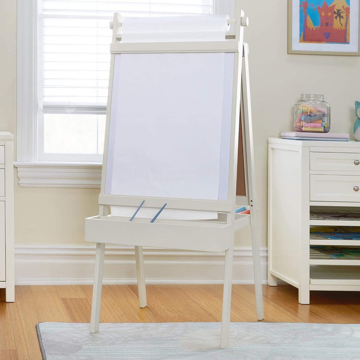 Martha Stewart Crafting Easel for Kids - Linen White: Wooden Chalkboard and Whiteboard with Easel Paper Roll, A-Frame Art Easel with Paint Cups | Kids Easel for Classroom |Playroom Furniture