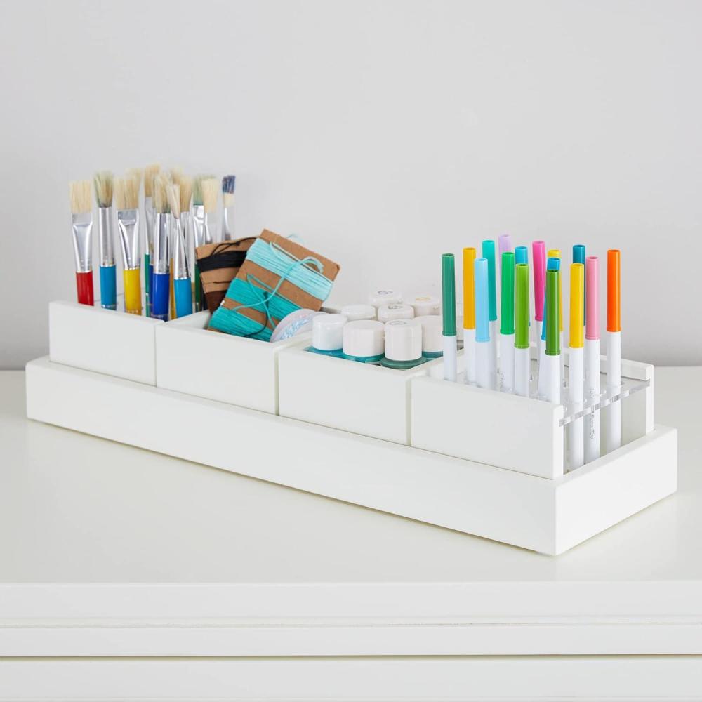 ORGANIZE ART SUPPLIES: Store paintbrushes, markers, pencils and crafting materials and keep children's workspaces clutter free