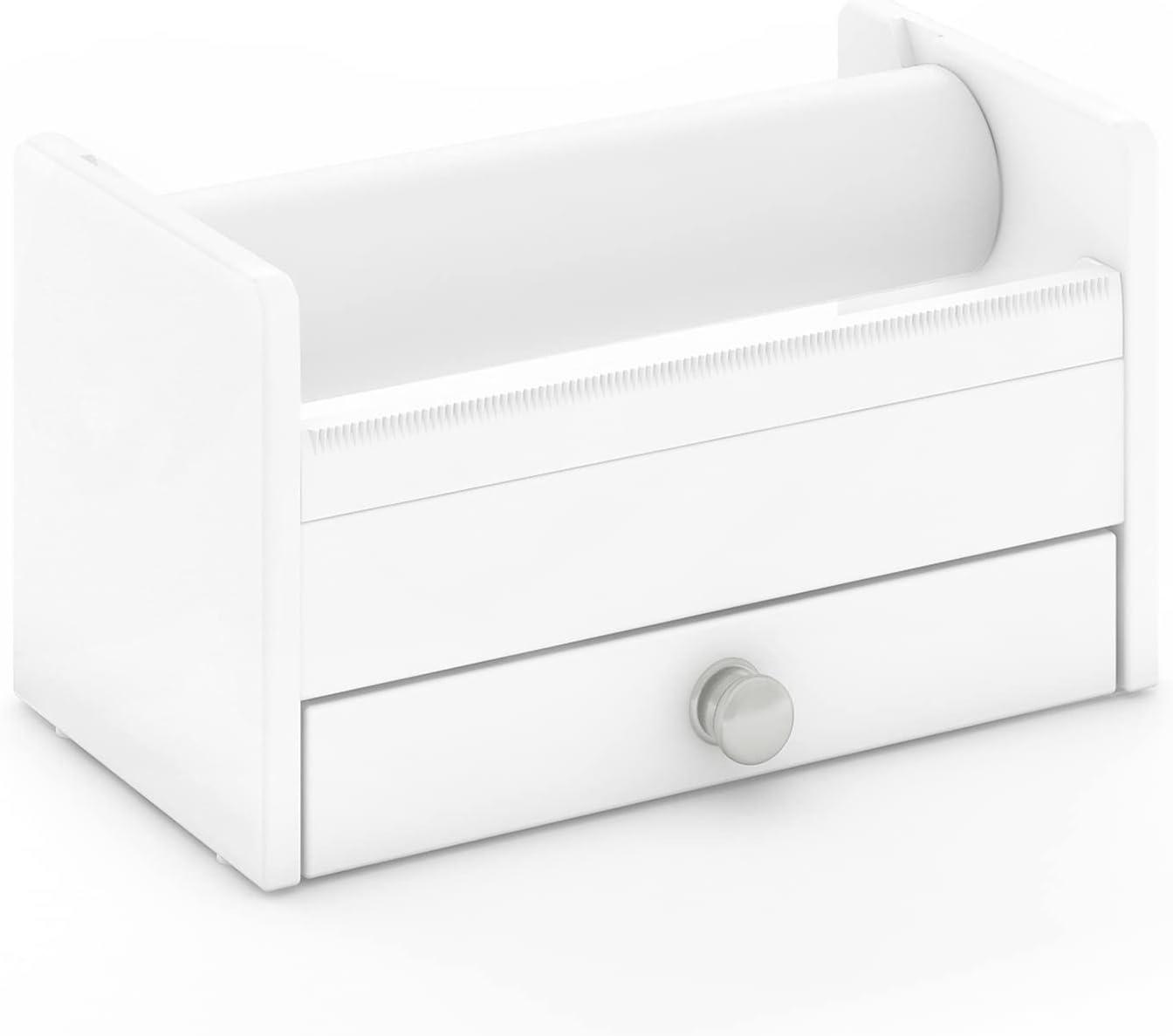 Martha Stewart Crafting Kids’ Tape Roll Dispenser – Linen White, Multi-Roll Tape Roll Dispenser with Cutter and Storage Drawer(G77113)