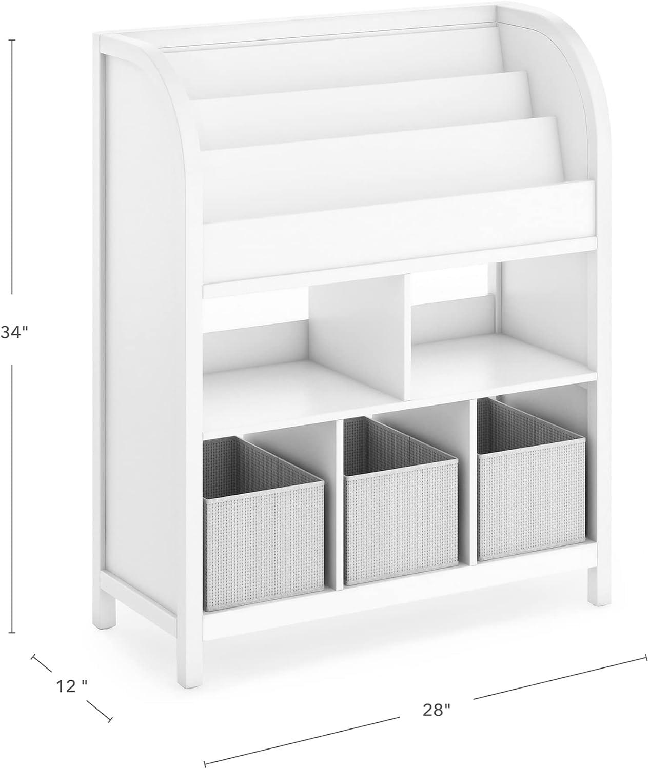 FRONT FACING BOOK AND TOY STORAGE FOR KIDS: Organize and store books, toys, stuffed animals, learning materials and more using this easy-to-reach bookcase with bins designed to fit perfectly in kids' bedrooms or playrooms