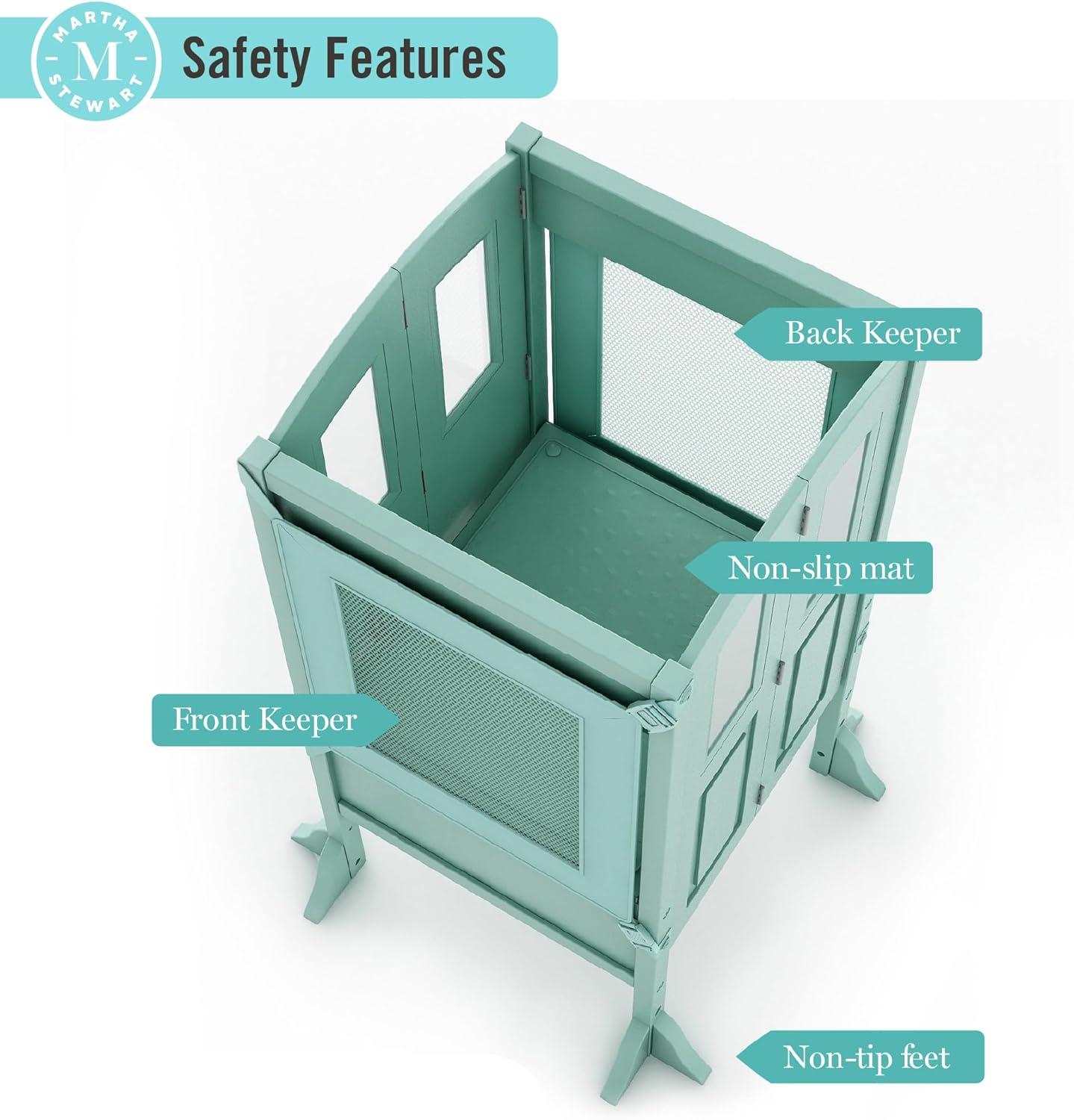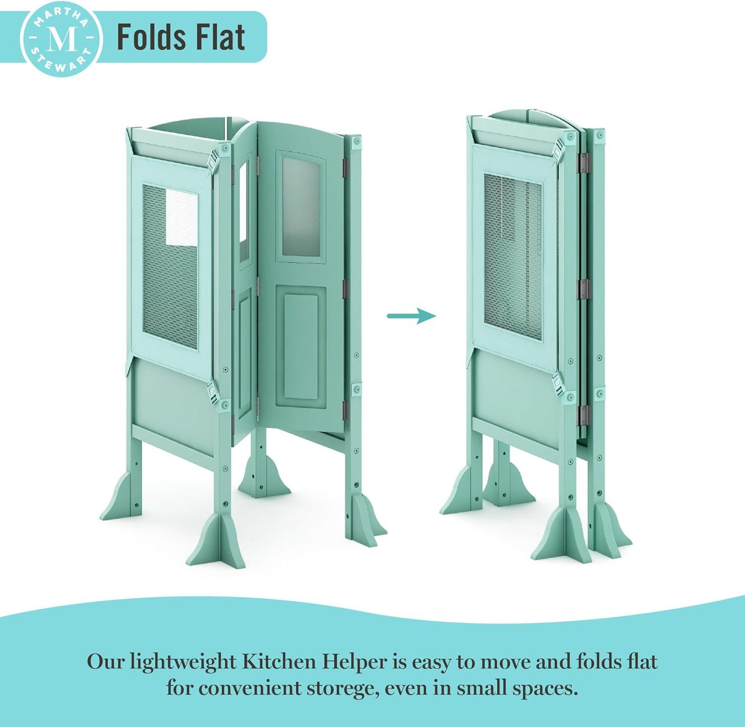 Martha Stewart Kitchen Helper ® Toddler Tower by Guidecraft – Taupe: Kids’ Wood, Foldable, Adjustable Height Platform | Safe Cooking Learning Step Stool for Toddlers(Mint)