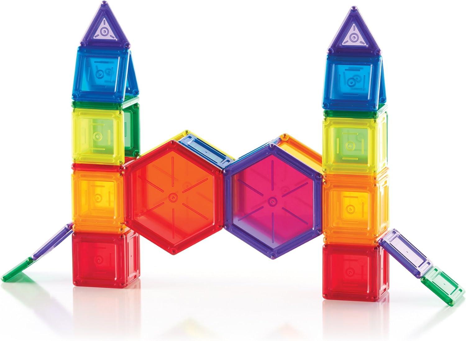 Open-ended magnetic building set includes 100 non-repelling magnetic shapes and a Creativity Guide, to inspire builders of all ages